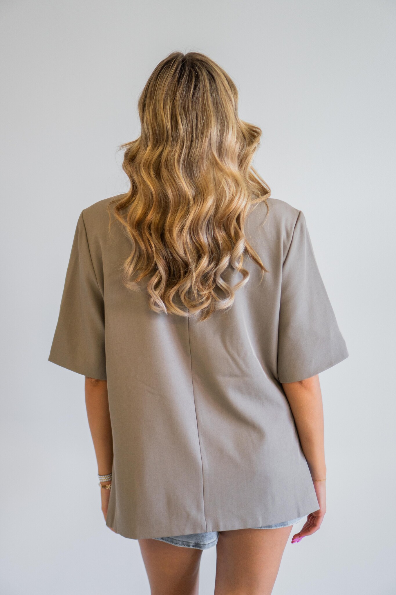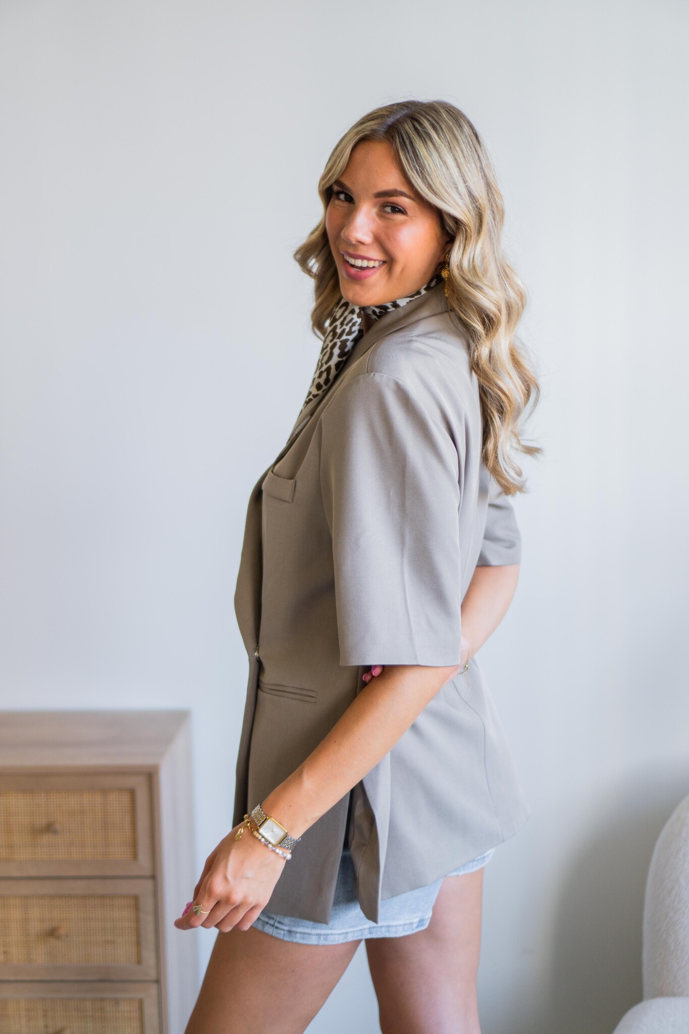 Deze blazer komt in een boxy model, valt oversized, is dubbel gevoerd en heeft 2 kleine splitjes aan de zijkanten. Combineer het met een spijker short en cowboylaarzen voor een complete look!