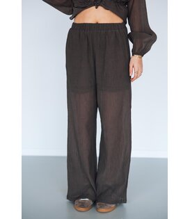 Deze blouse heeft een doorschijnende stof, een elegante V-hals en een elastische tailleband met koord voor een flatterende pasvorm. Combineer het met de bijpassende broek voor een co-ord look.
