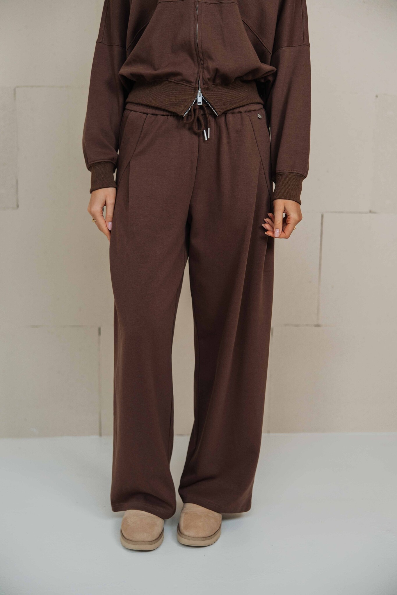 Deze broek is uitgevoerd in een trendy choco bruine kleur en heeft een comfortabel, relaxed model. Combineer met het bijpassende vest voor een stijlvolle jogging set.