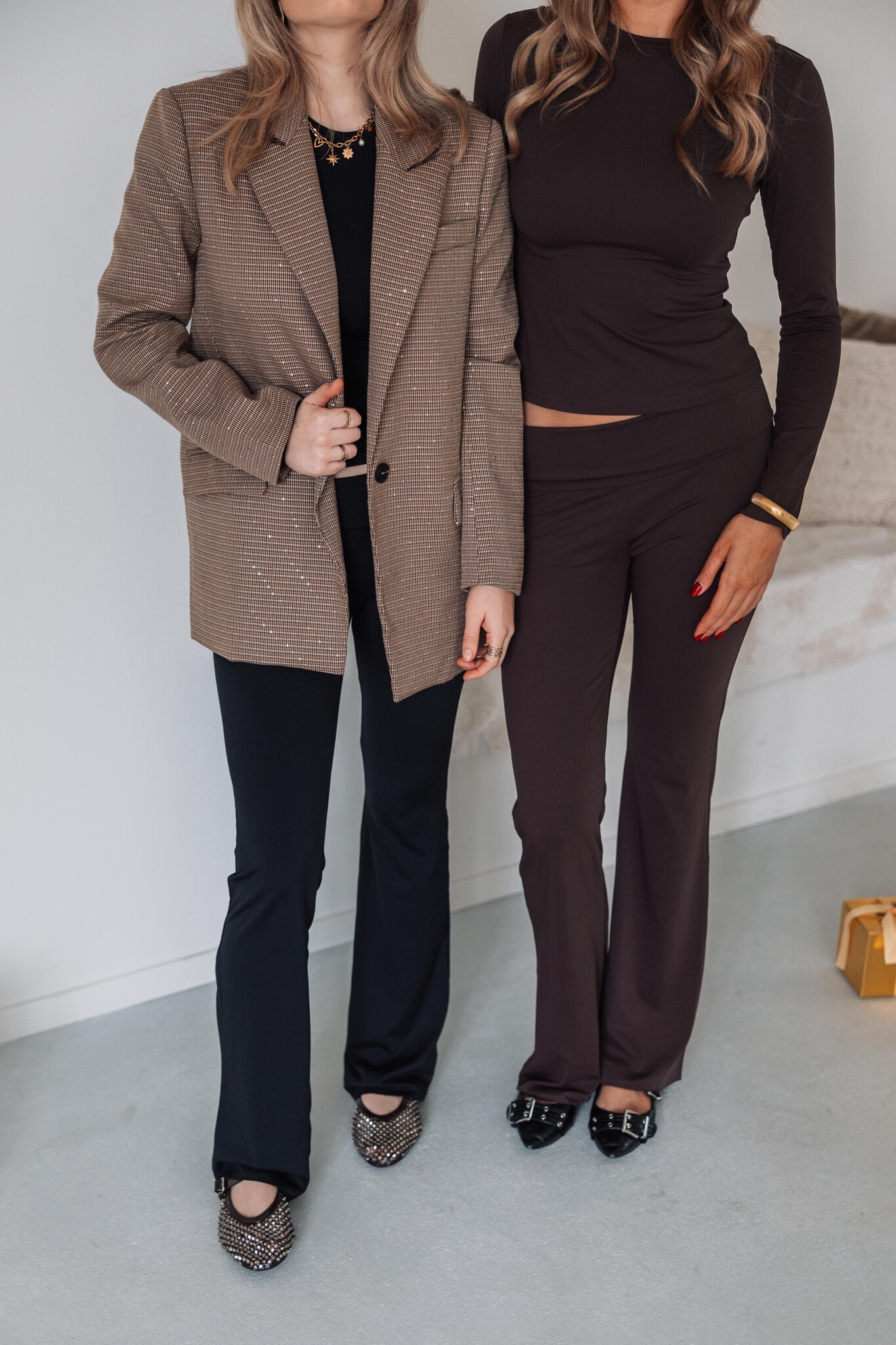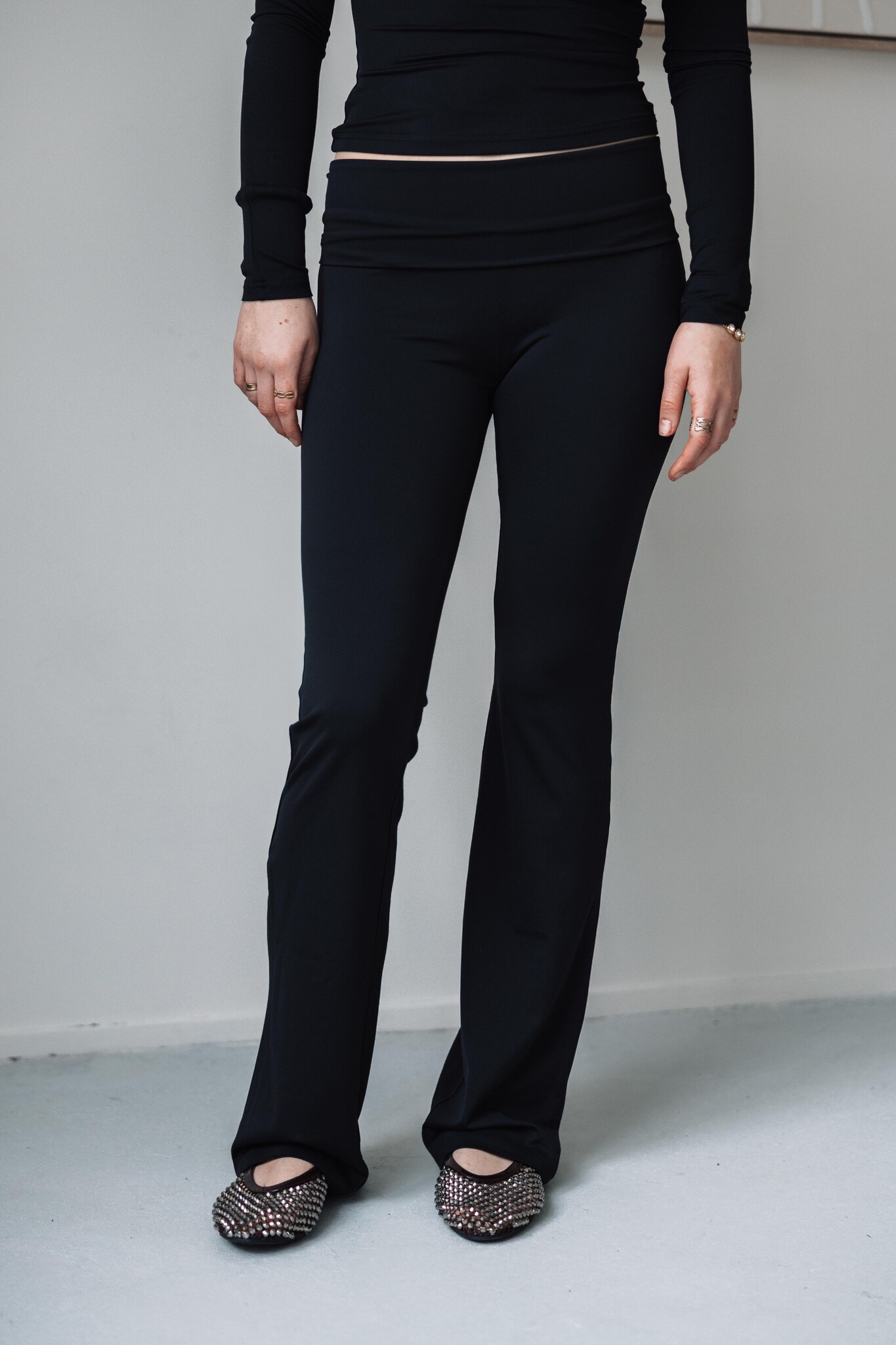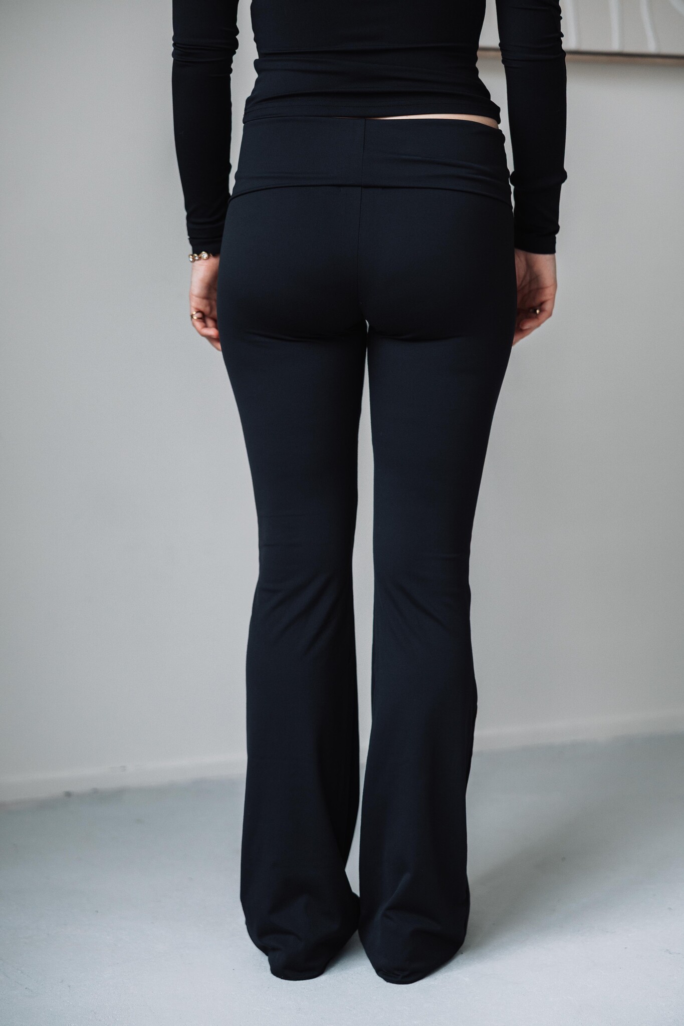 Deze flared broek in een tijdloze zwarte kleur is gemaakt van een comfortabele stof en vormt samen met de bijpassende top een stijlvolle en comfy party look.