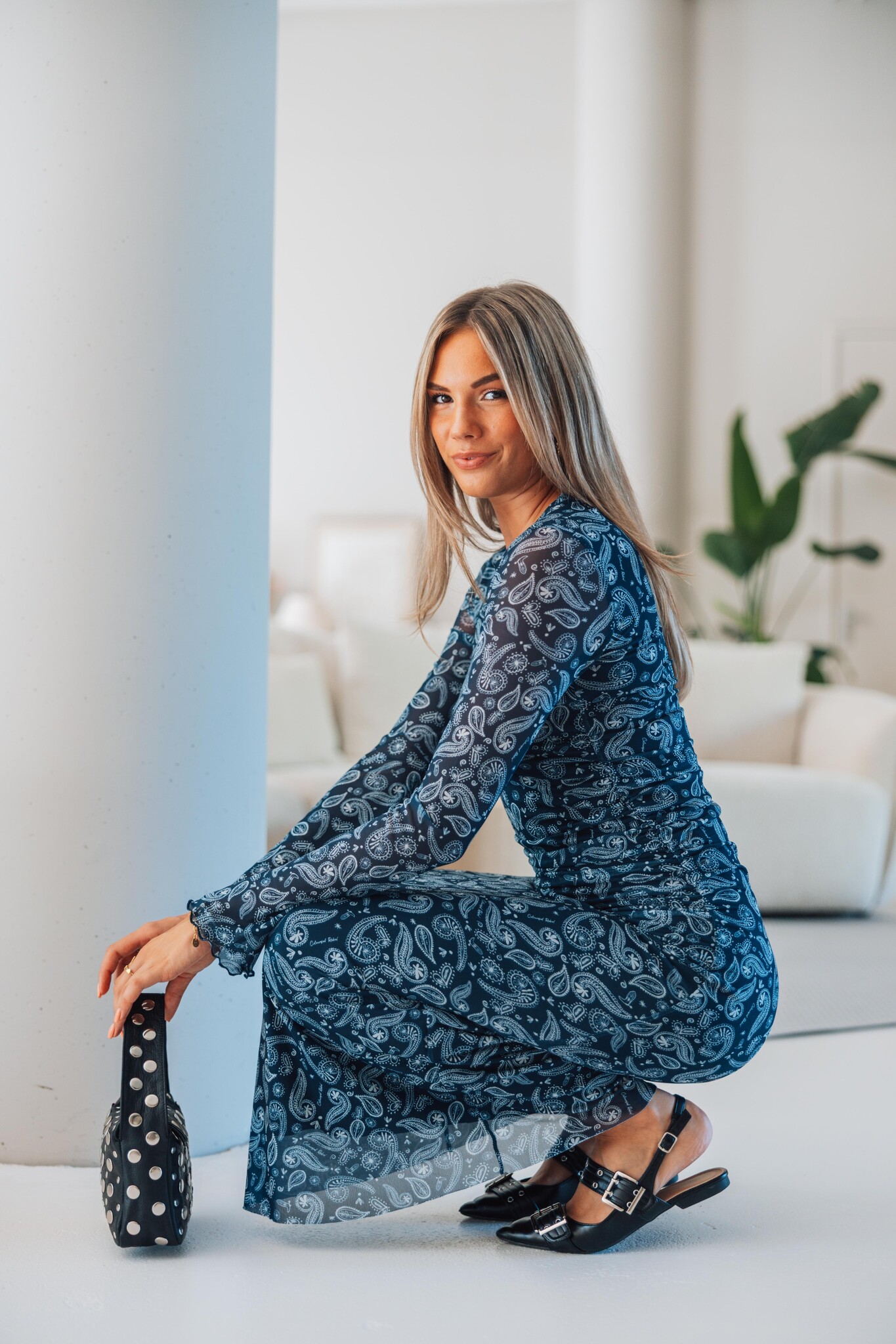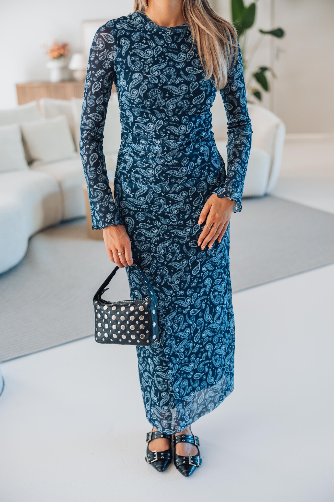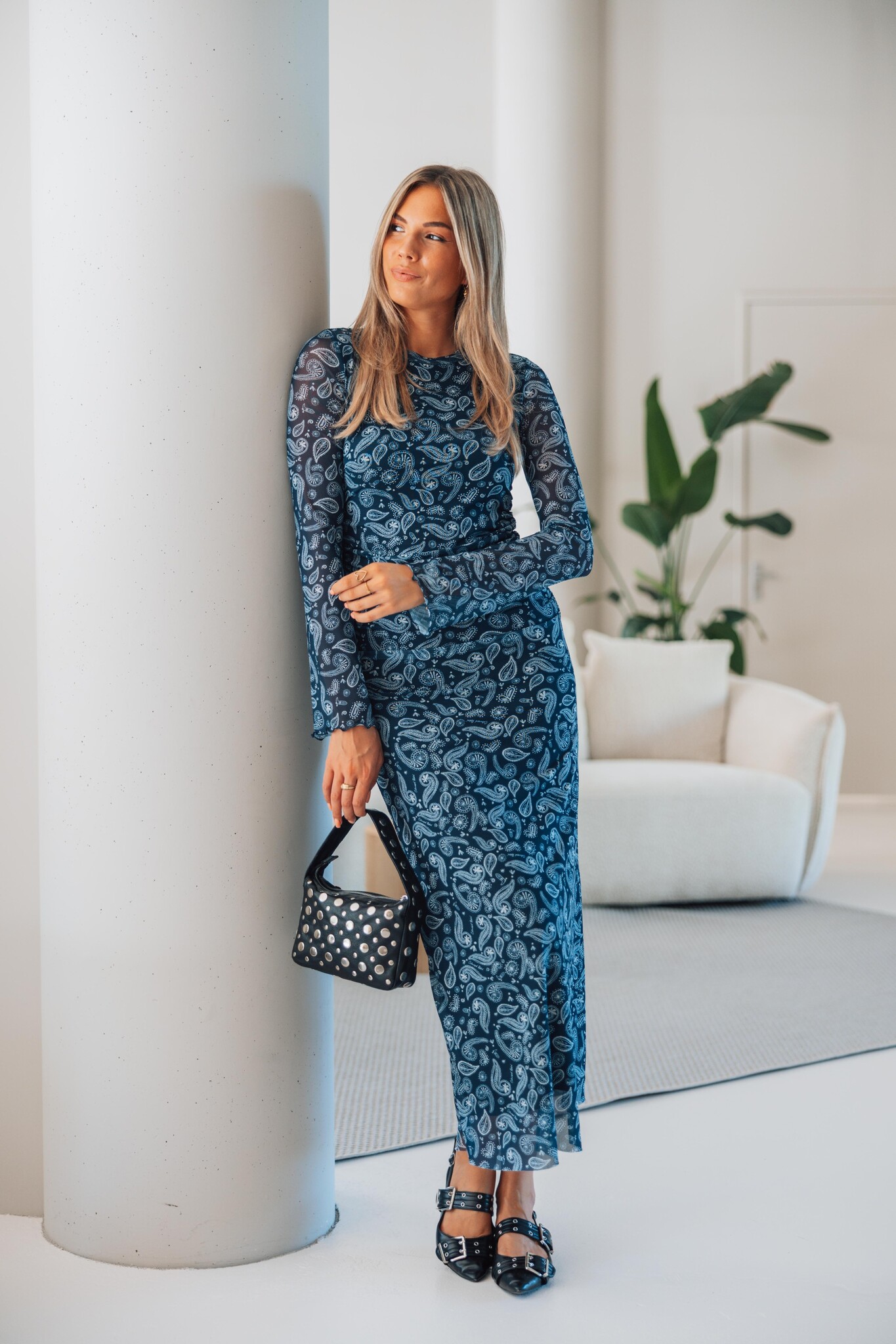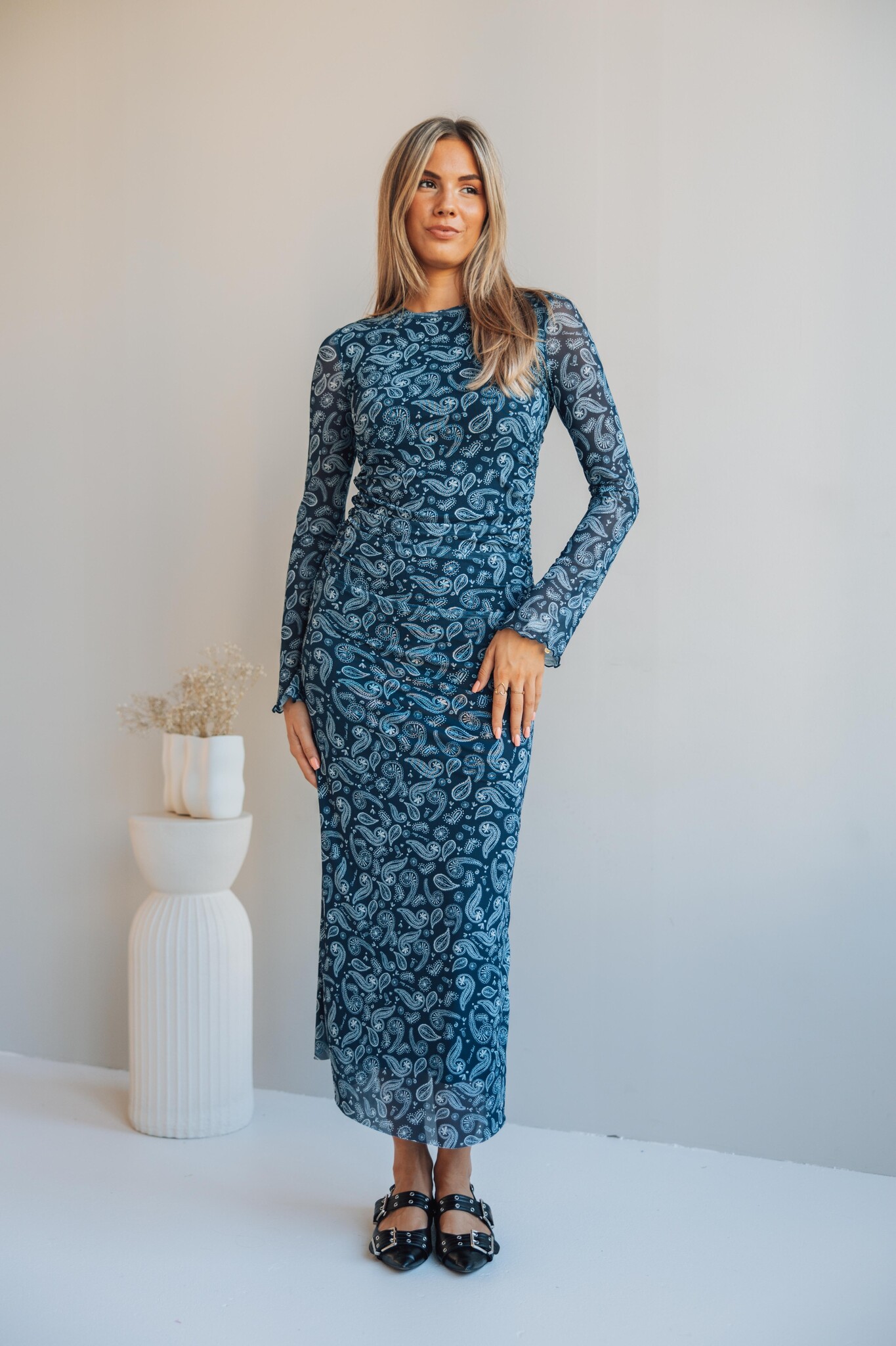Deze donkerblauwe maxi dress van Colourful Rebel met paisley print is een elegante eyecatcher. De jurk heeft een aangesloten pasvorm en is gemaakt van een stretchstof die mooi meebeweegt met je lichaam.
