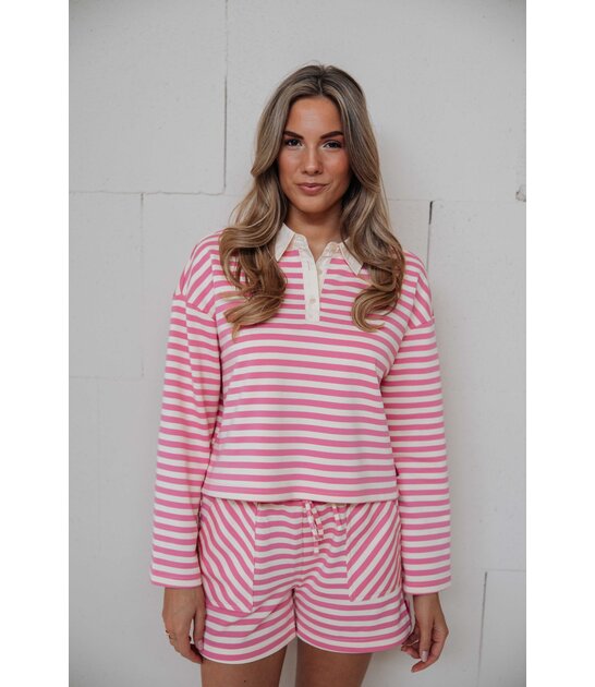 Deze short van Fluresk heeft een comfortabele high waist fit en een elastische tailleband met strik ceintuur voor de perfecte pasvorm. De speelse streep-print geeft een frisse, sporty vibe. Perfect voor een casual look op zonnige dagen.