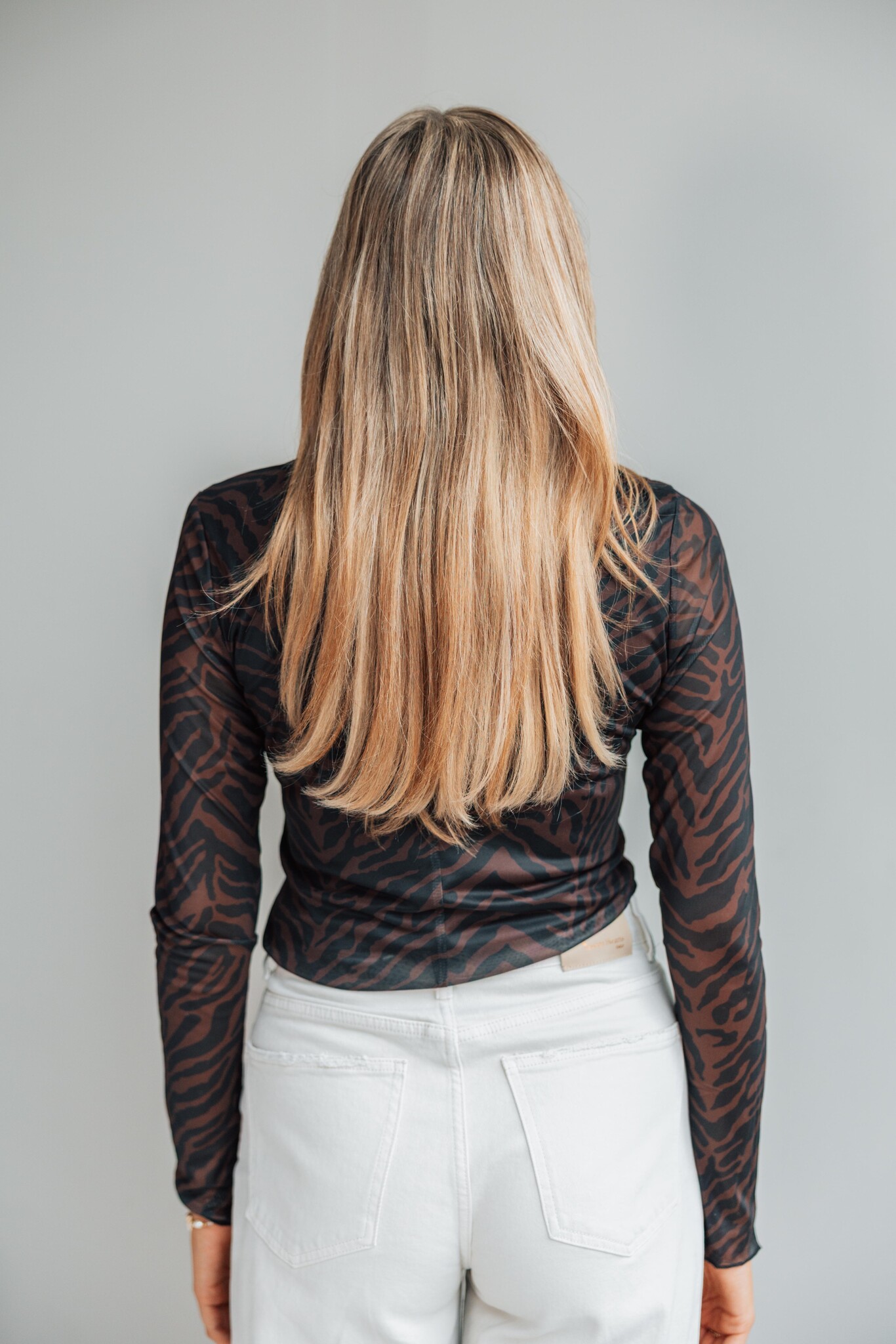 Deze top van Fluresk heeft een transparante mesh bruin-zwarte zebraprint. De top is speels en stijlvol, perfect voor een avondje uit!