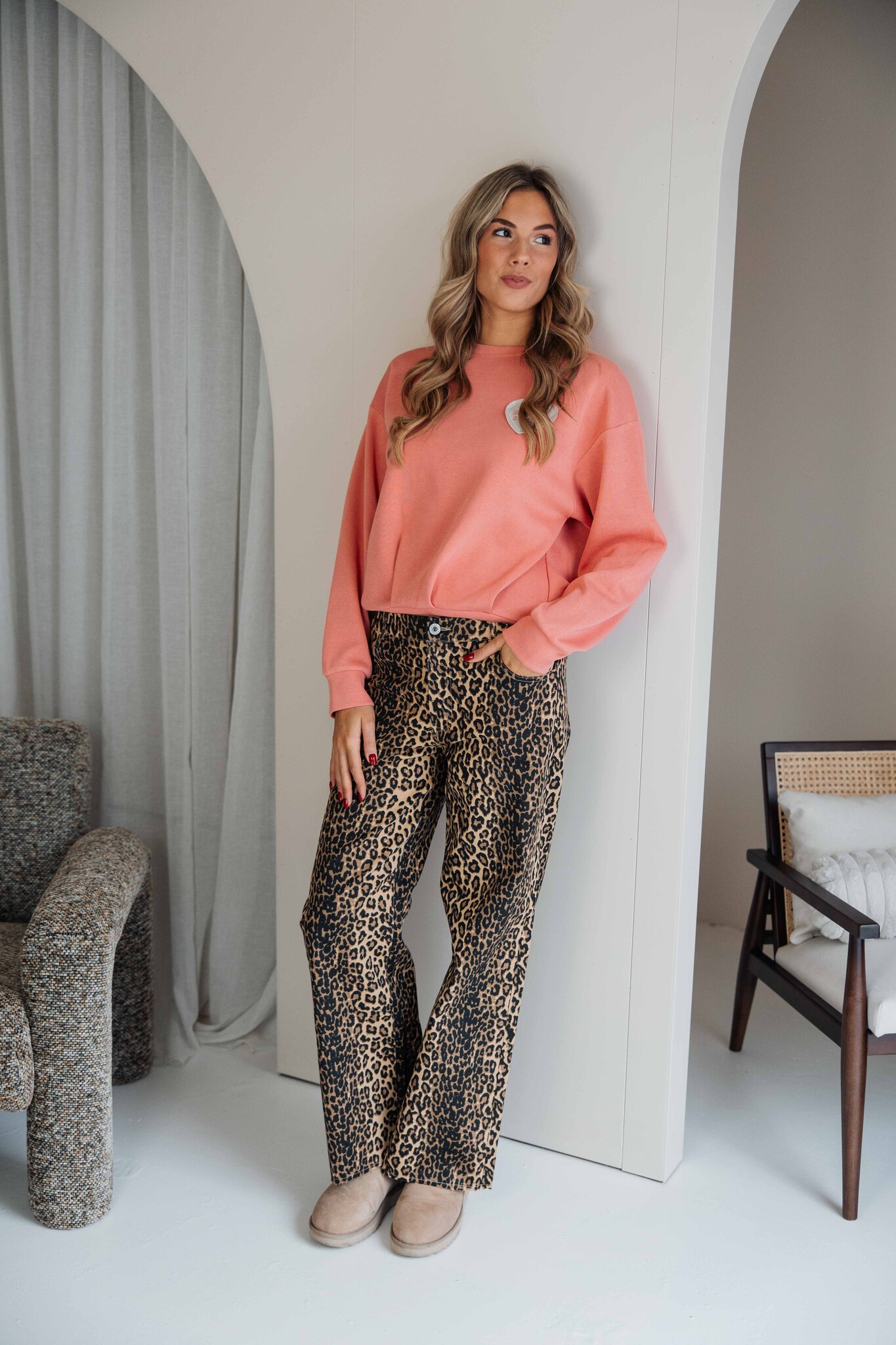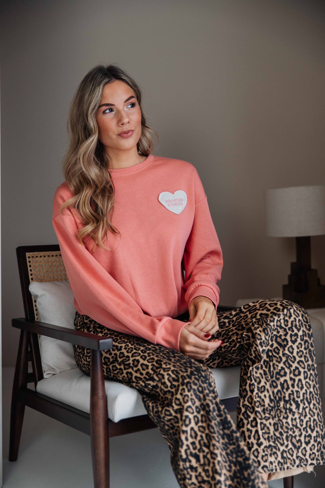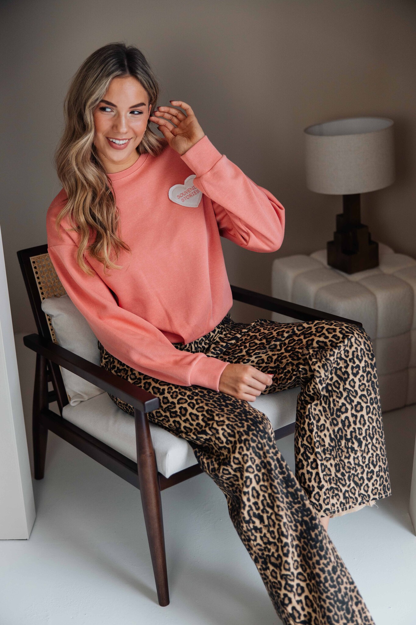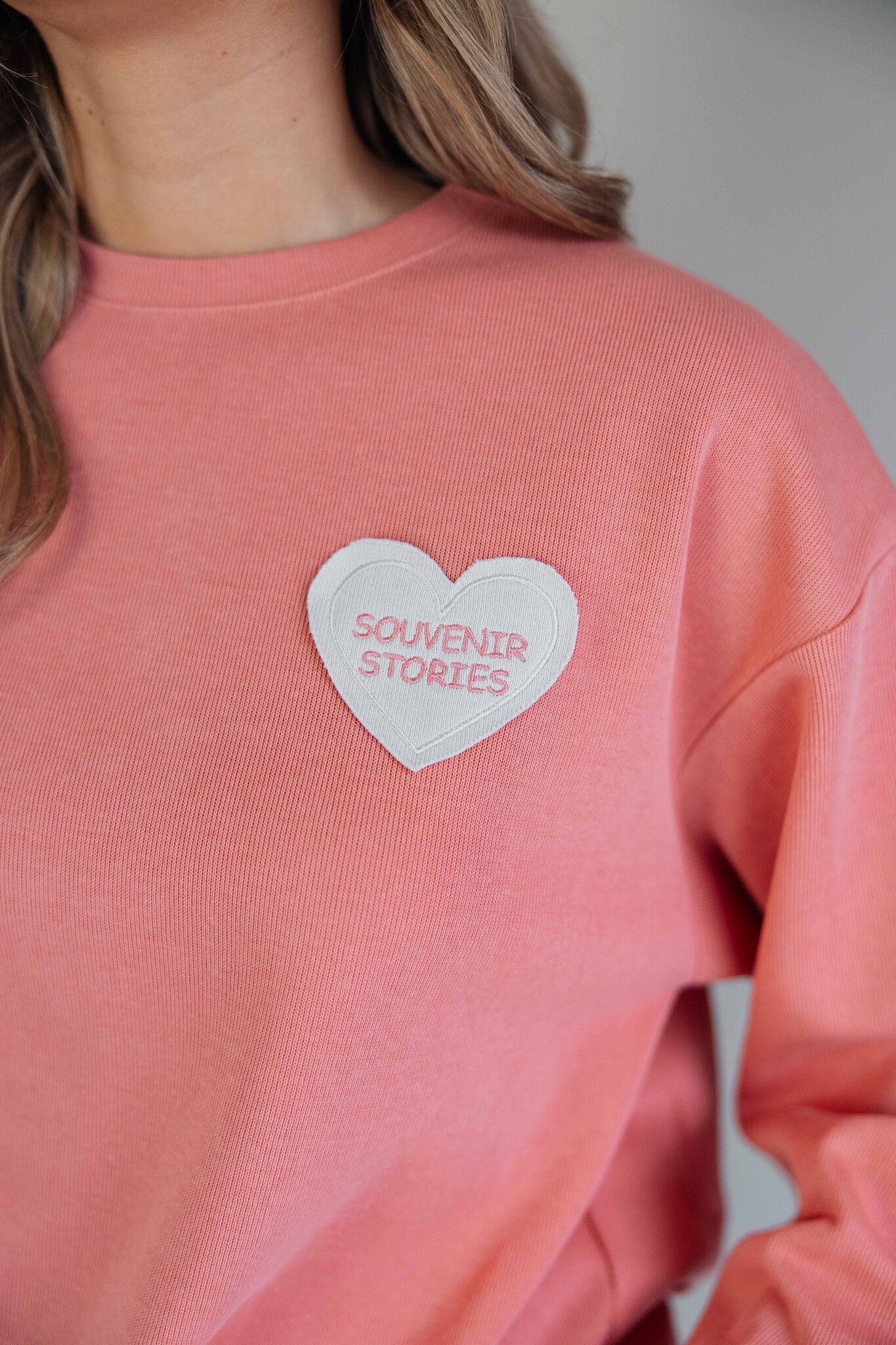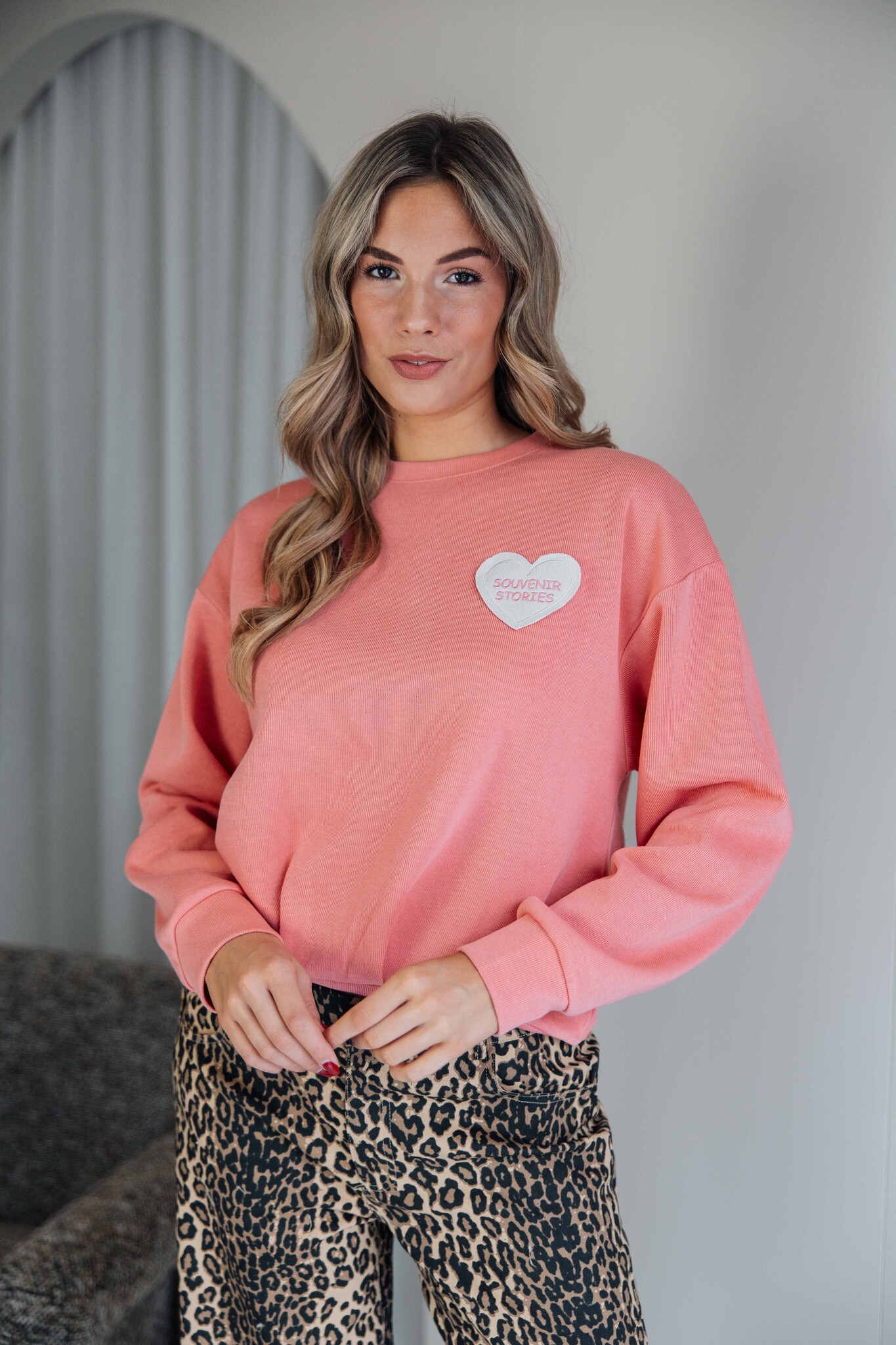 Deze sweater van Fluresk is comfy en komt in een mooie pastel peach kleur. De zachte stof voelt heerlijk aan en de geborduurde ‘Souvenir Stories’ patch zorgt voor een speels detail.