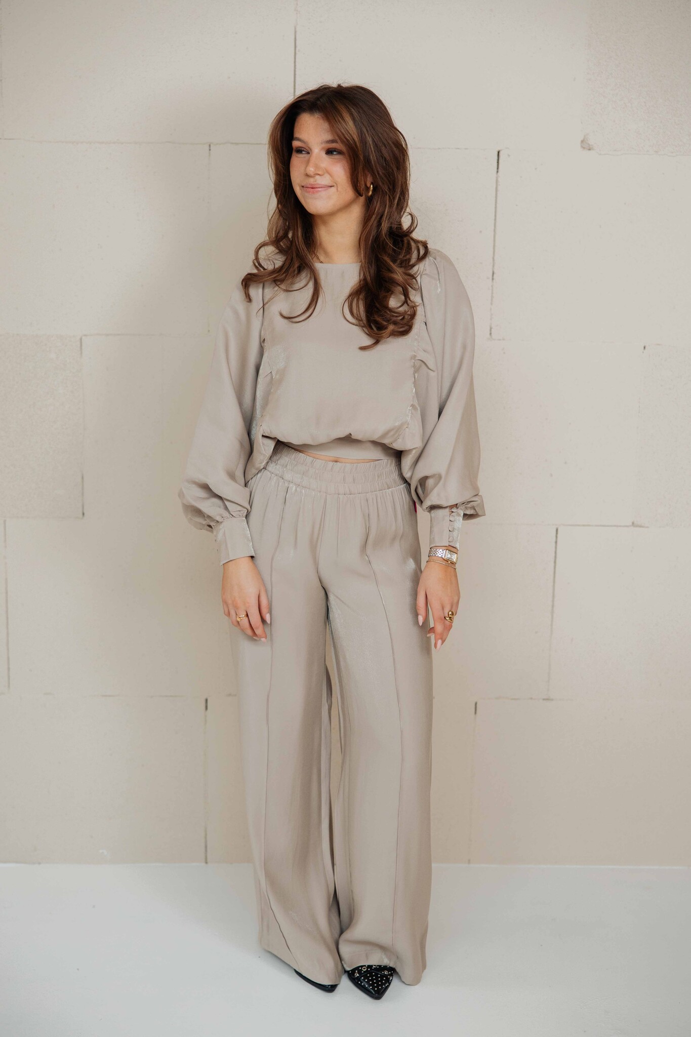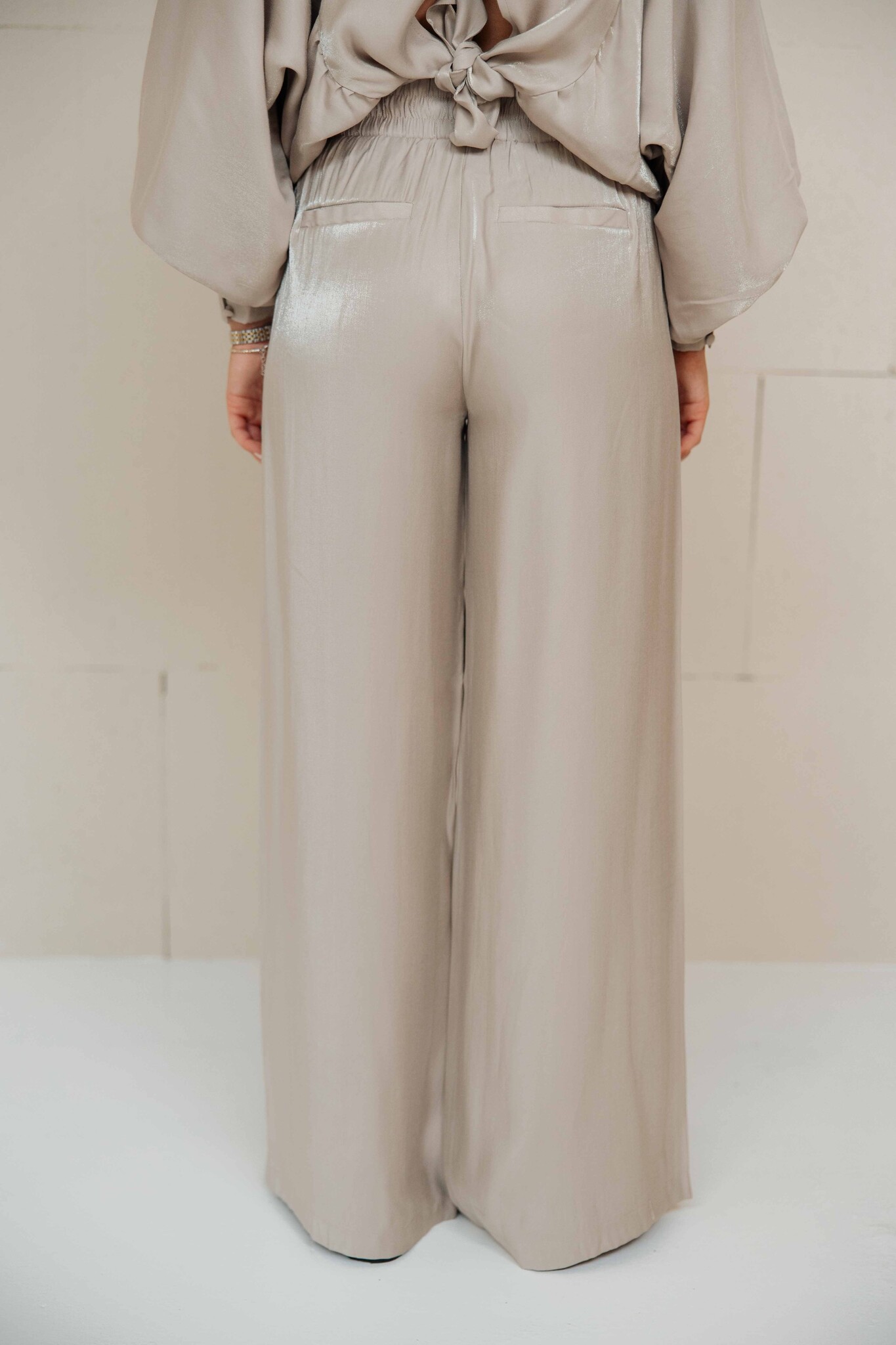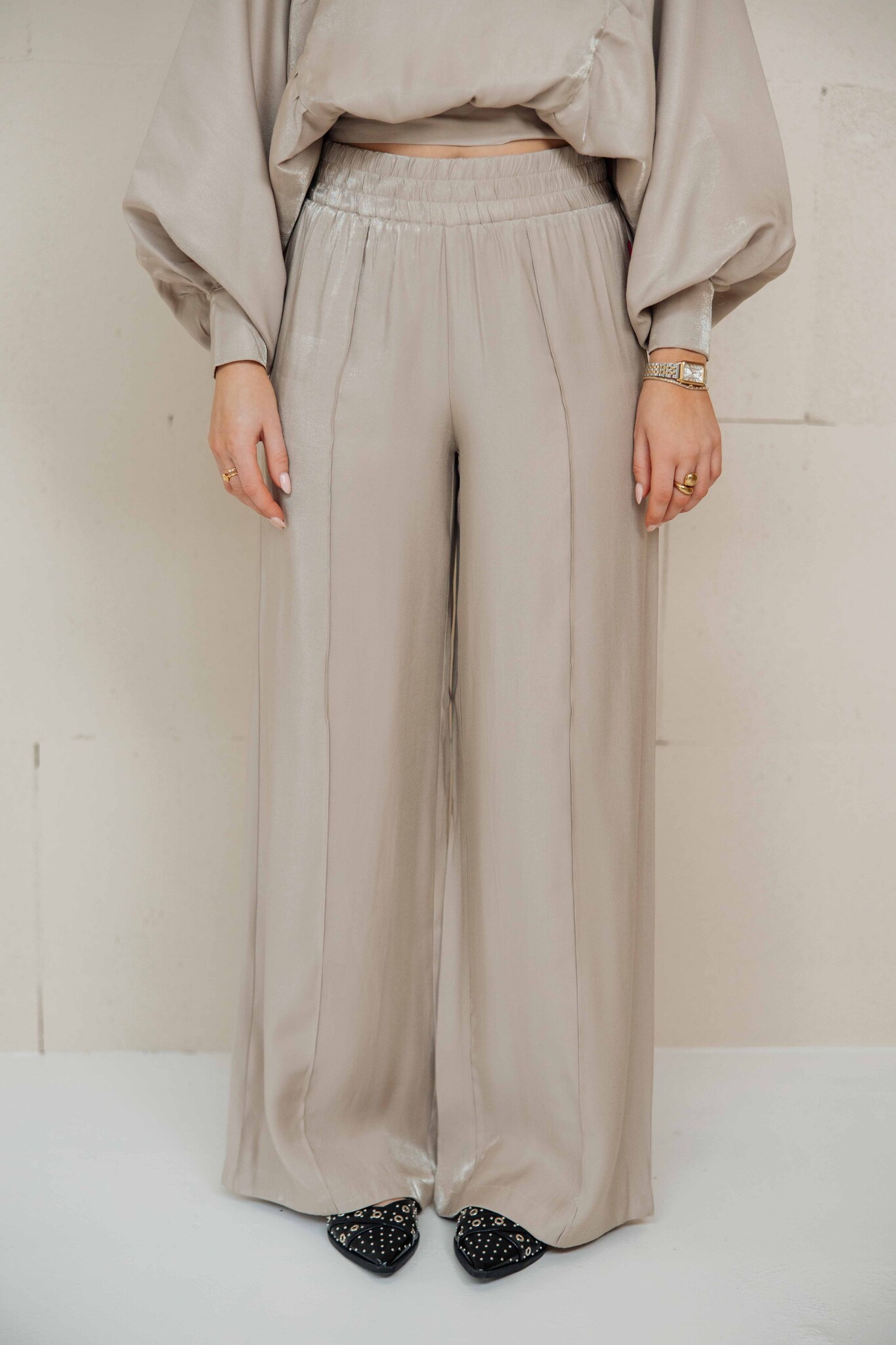 Deze broek van Fluresk geeft je look direct een chique touch. De soepel vallende stof met subtiele glans en elastische tailleband combineert comfort met stijl.