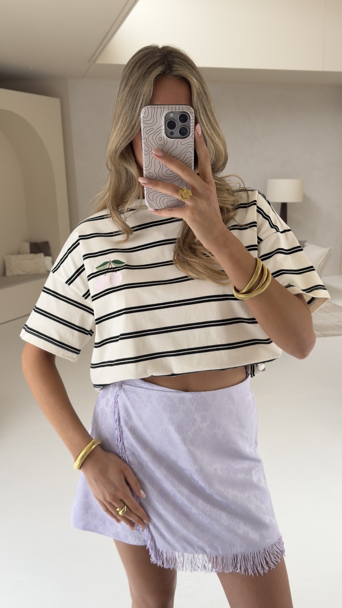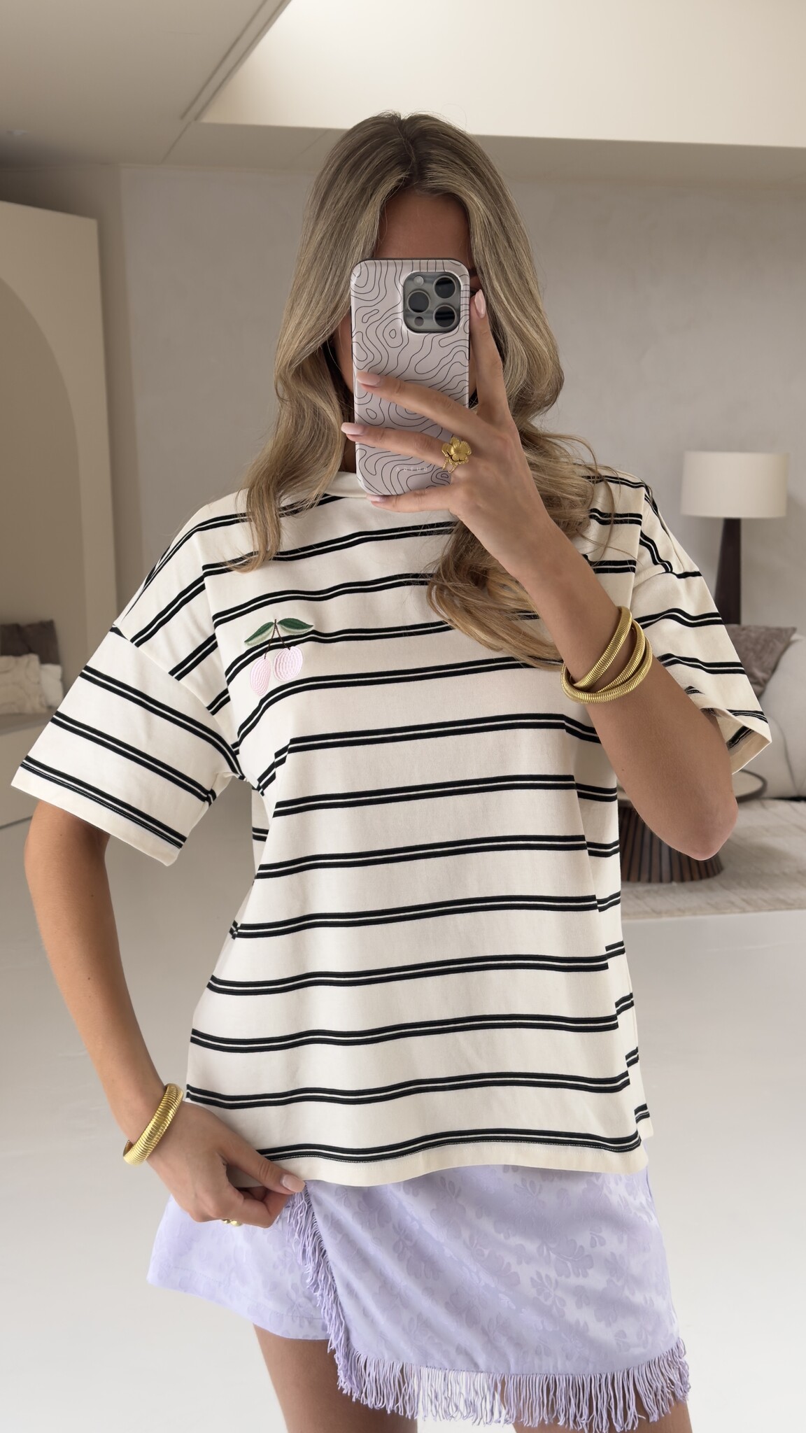 Dit t-shirt van Fluresk heeft een rechte fit en korte mouwen. De tijdloze strepen geven een effortless uitstraling, terwijl de geborduurde kers op de borst een trendy touch toevoegt. De zachte stof maakt ’m heerlijk comfortabel!