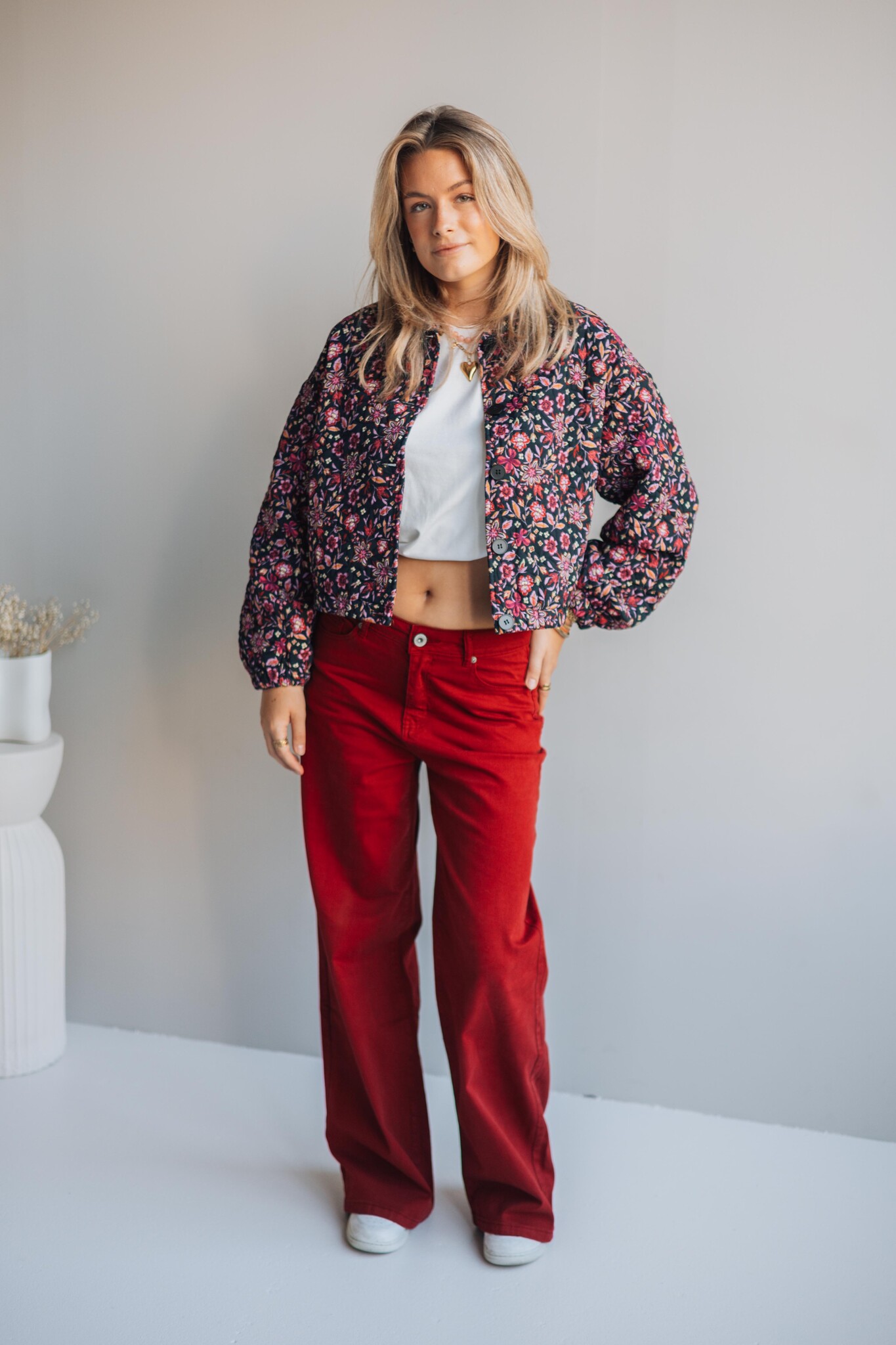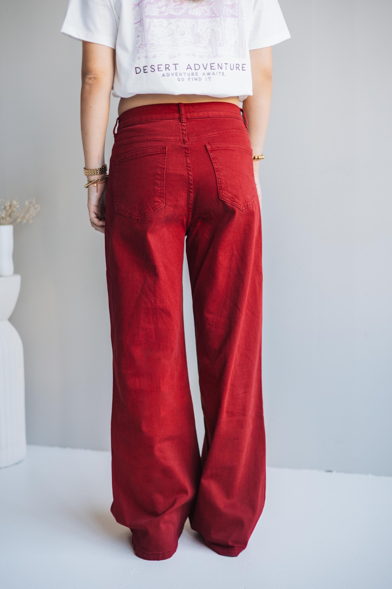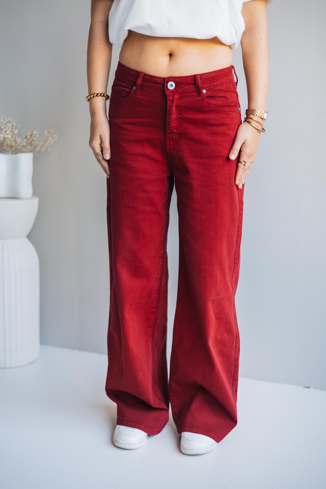 Deze broek van Fluresk heeft een rechte fit en komt in een zachtrode kleur voor een subtiele twist. Perfect voor elke dag: combineer met een knit voor comfy vibes of draag met een blouse en boots voor een upgrade.