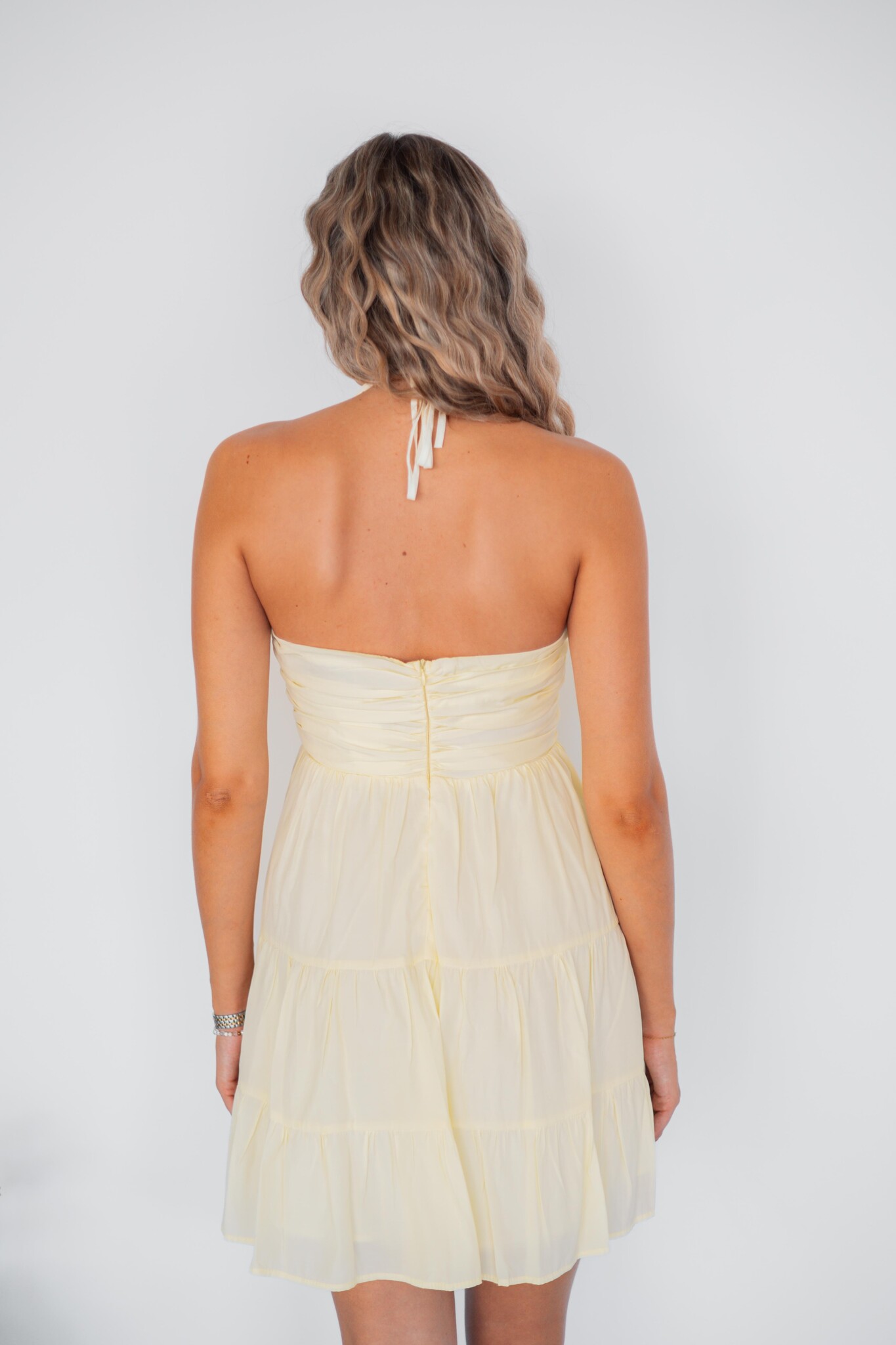 Hoe cute is dit nieuwe zomer jurkje! Dit jurkje heeft leuke ruffle details, een halter-nek, een ritssluiting aan de achterkant en is gevoerd.
