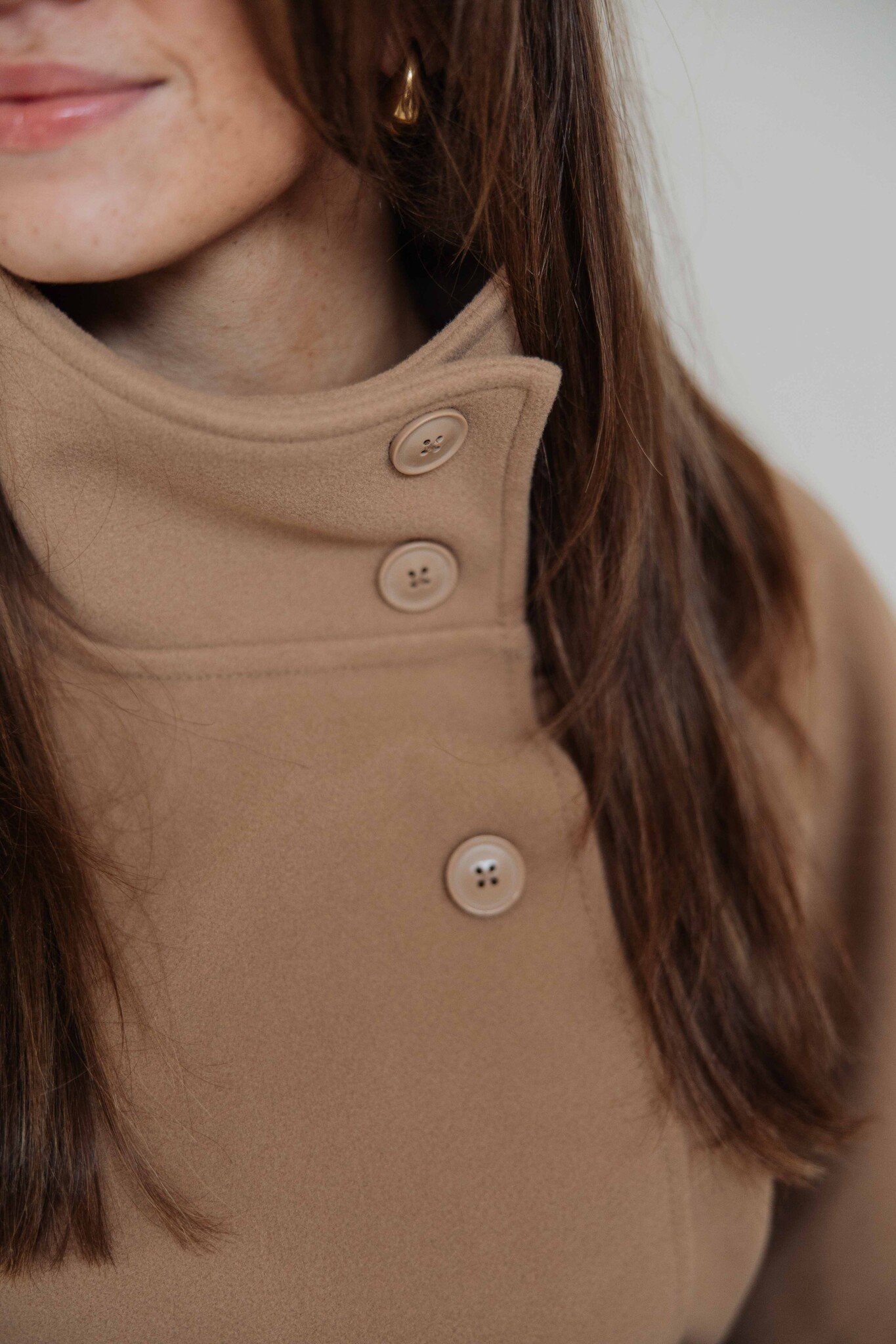 Deze camelkleurige jas van Gina Tricot is stijlvol en on-trend. De jas heeft een oversized pasvorm, lange en brede mouwen en een hoge kraag met knopen. Met de zelfbindende riem accentueer je de taille op jouw manier!