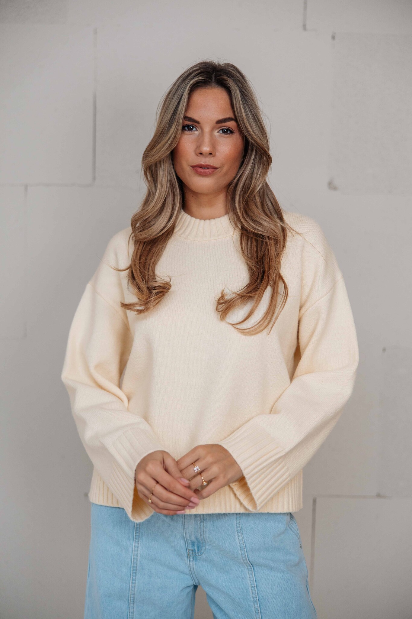 Gina Tricot Crew neck knitted sweater | vanilla