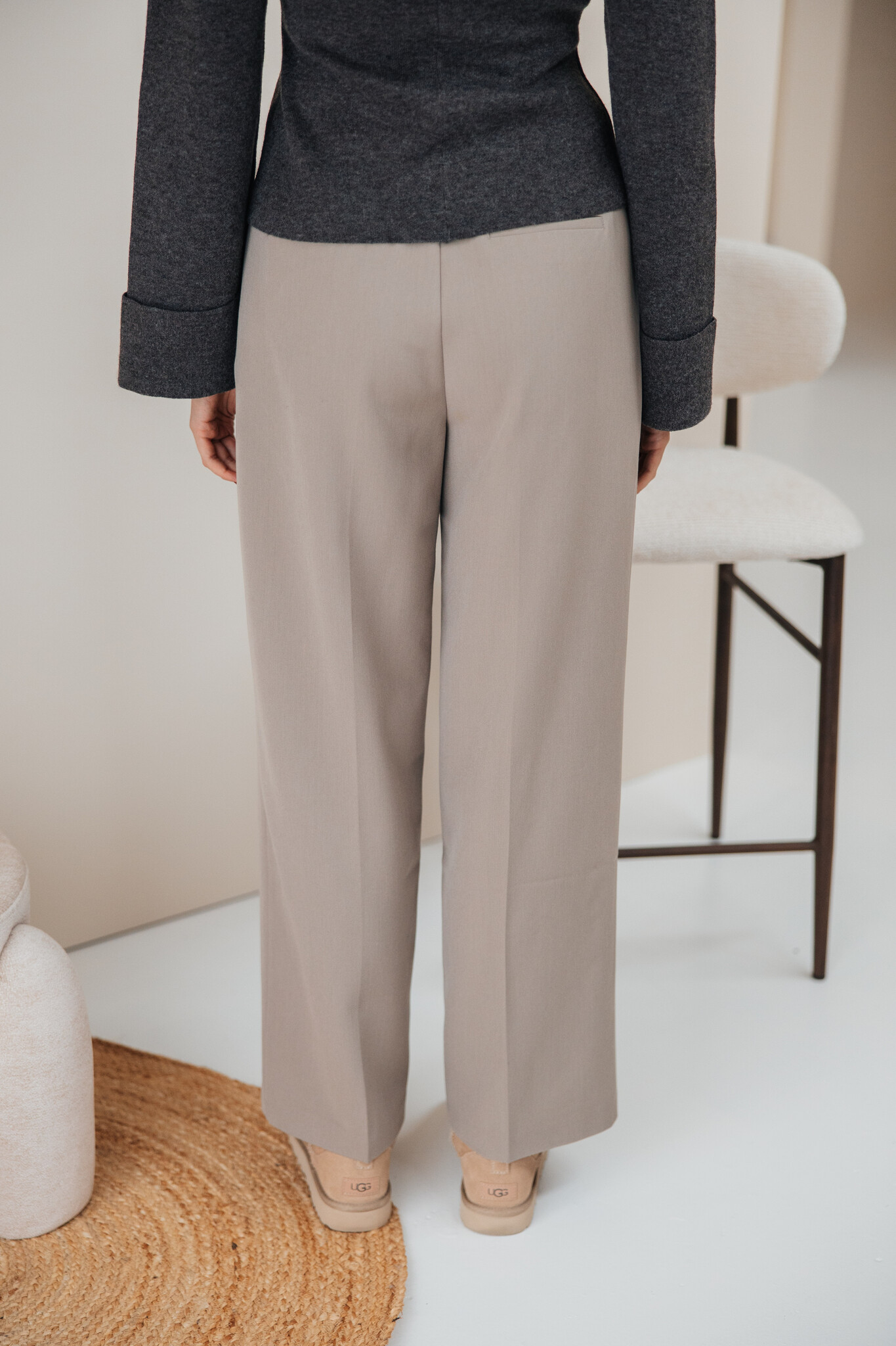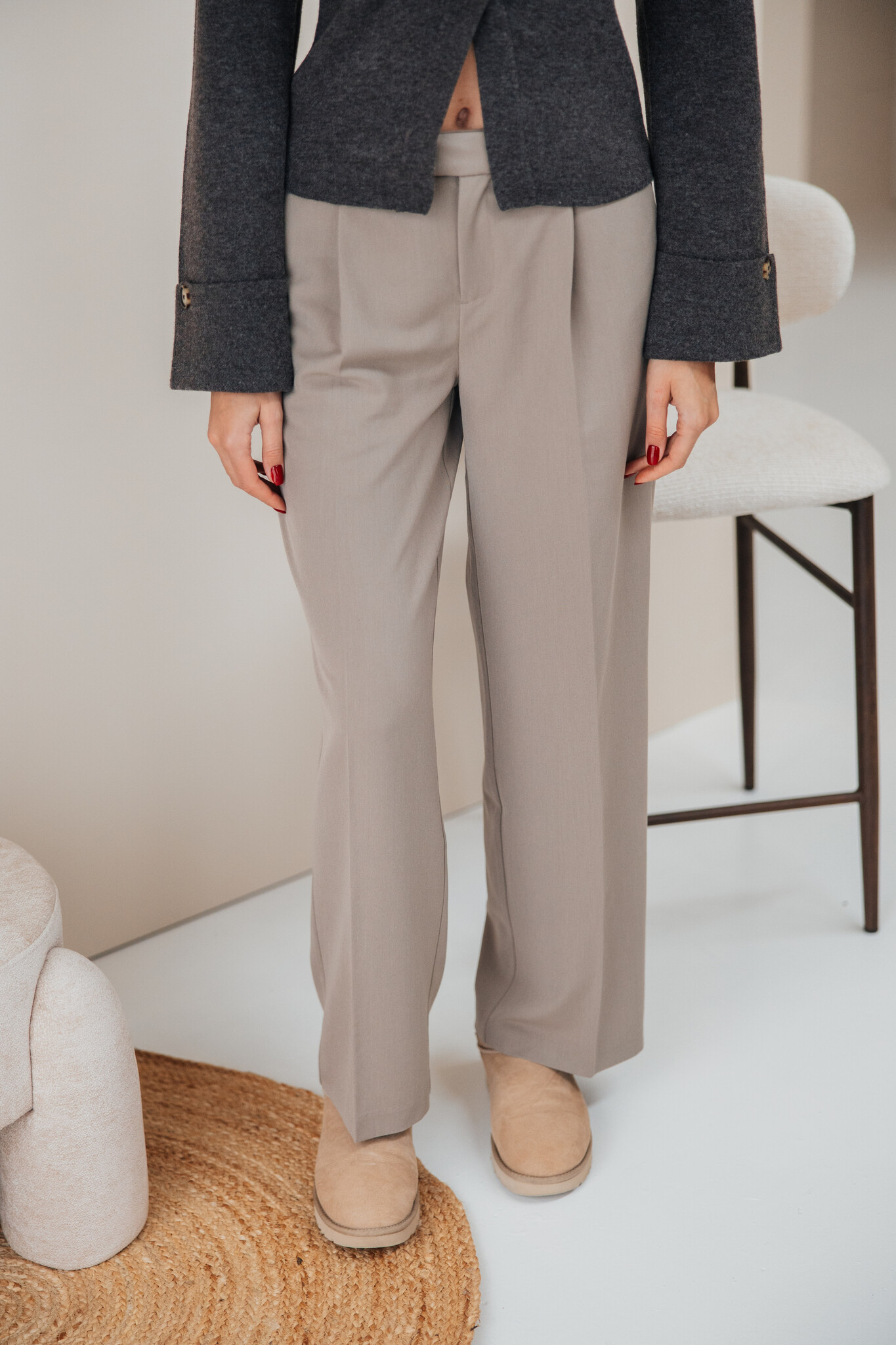 Deze beige pantalon van Gina Tricot heeft elegante plooien aan de voorkant en een wide-leg model. De broek is voorzien van steekzakken, heeft een normale pasvorm en een klassieke gulp.