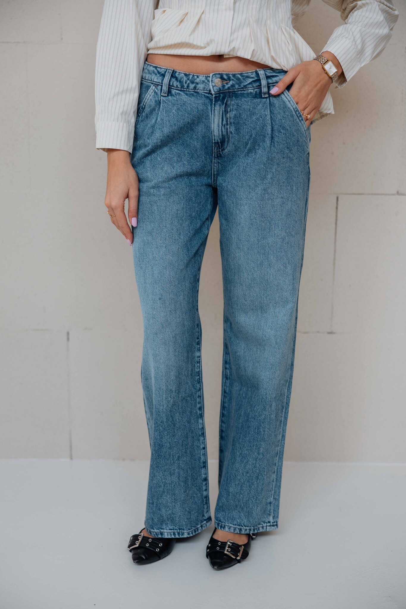 Gina Tricot Pleated slouchy jeans | blauw