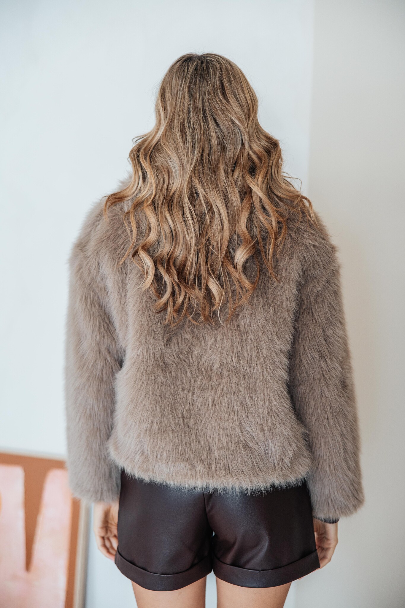 Deze taupekleurige faux fur jas is heerlijk zacht en perfect om je outfit een cozy touch te geven. Een echte musthave voor in je kledingkast!