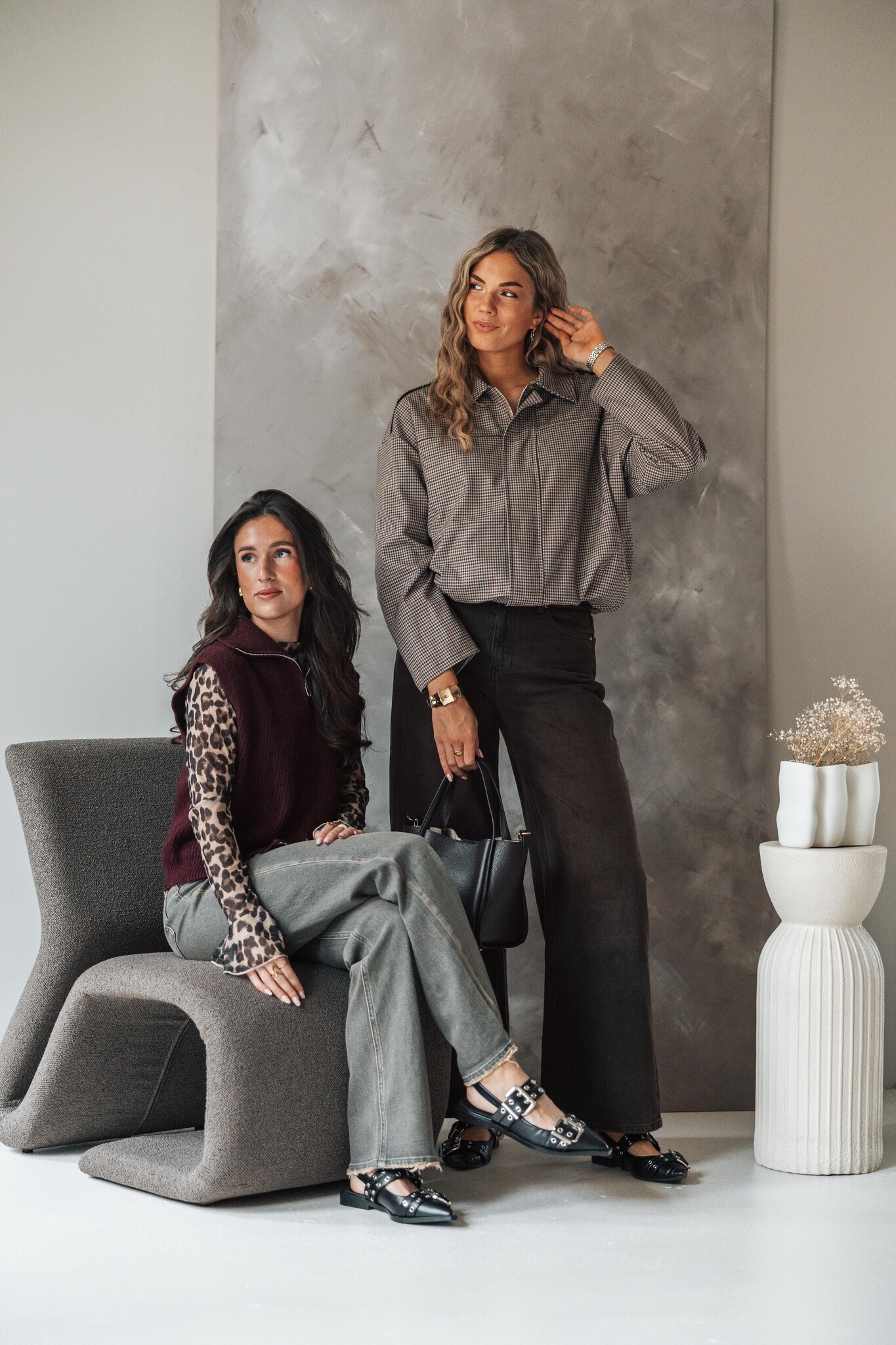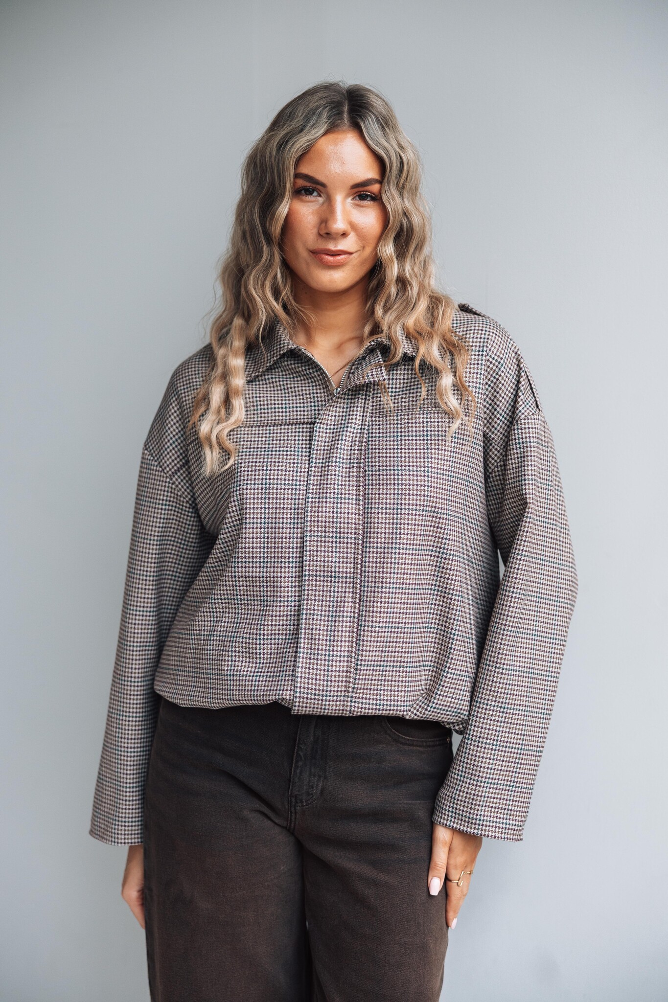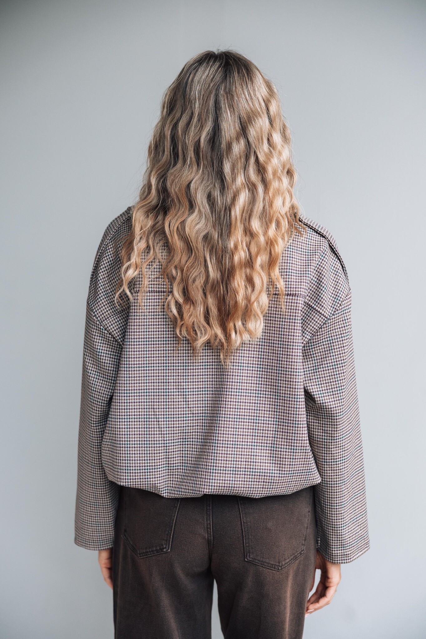 Dit jasje heeft een speelse ballon fit en komt in een trendy geruite stof. De herfstkleuren geven een cozy en stijlvolle uitstraling.