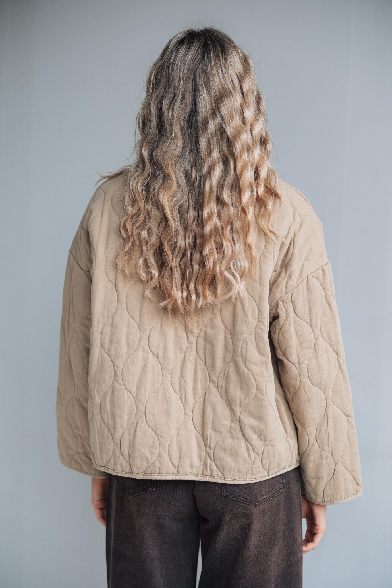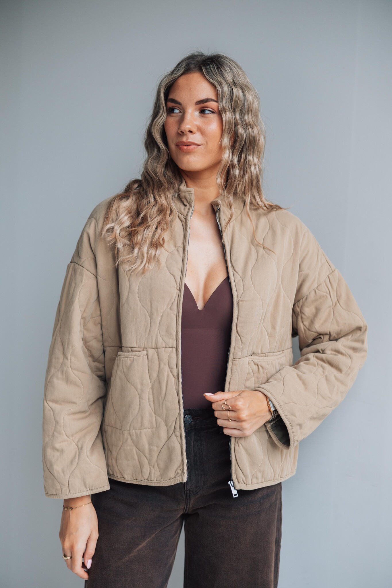 Dit gewatteerde jasje heeft een stijlvol patroon, steekzakken, ritssluiting en een opstaand kraagje, een echte musthave voor het najaar!