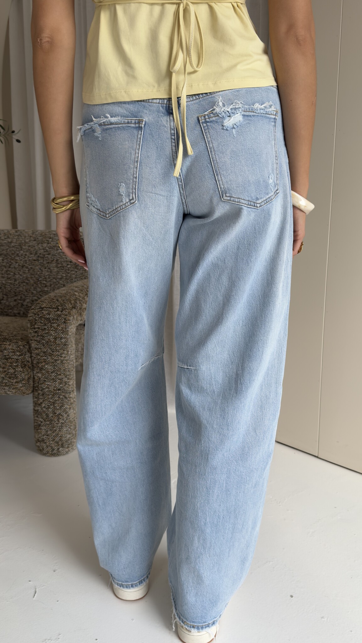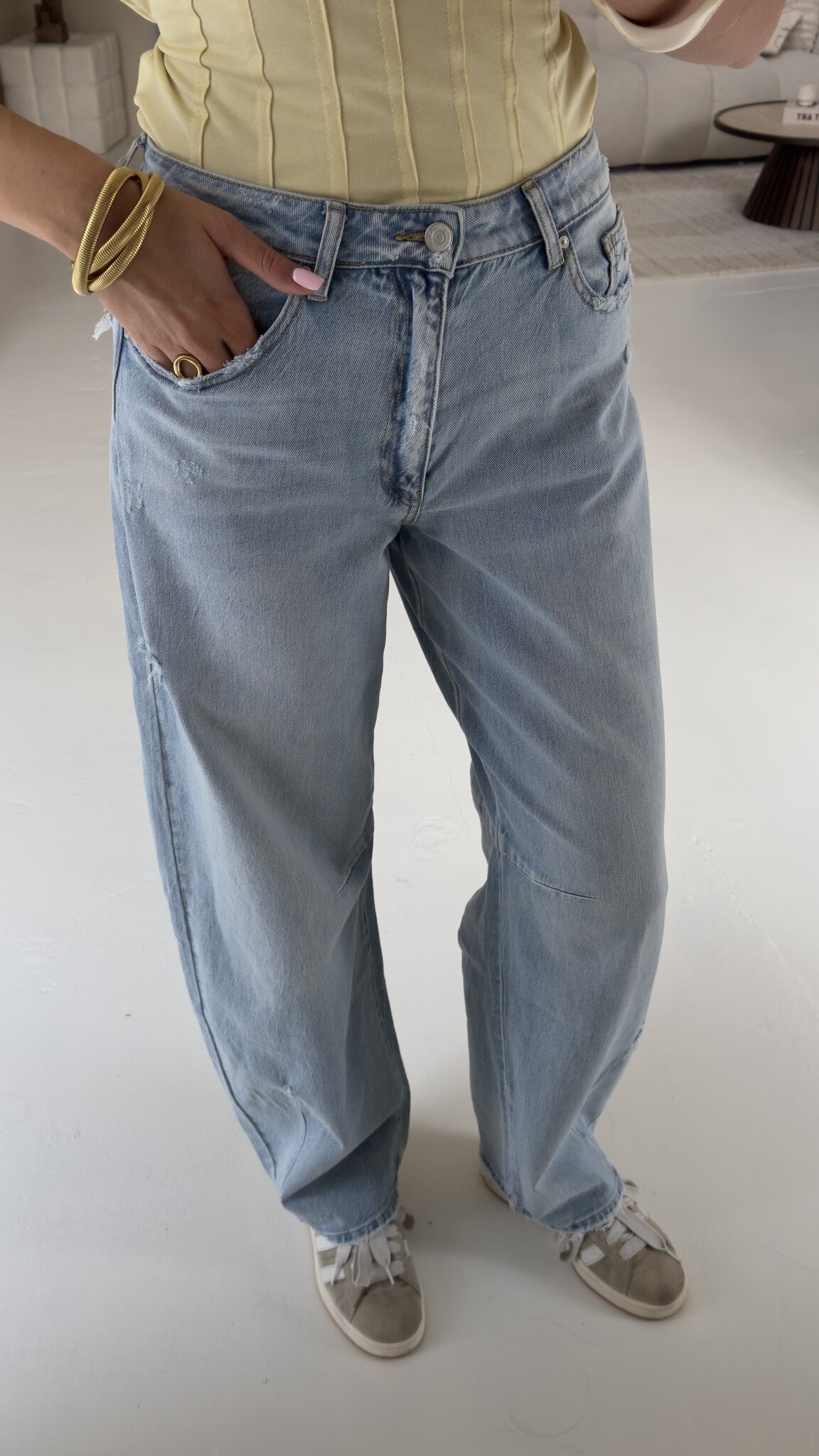 Deze jeans heeft een balloon fit, stretch voor extra comfort, en een trendy ripped look voor een stoere uitstraling.