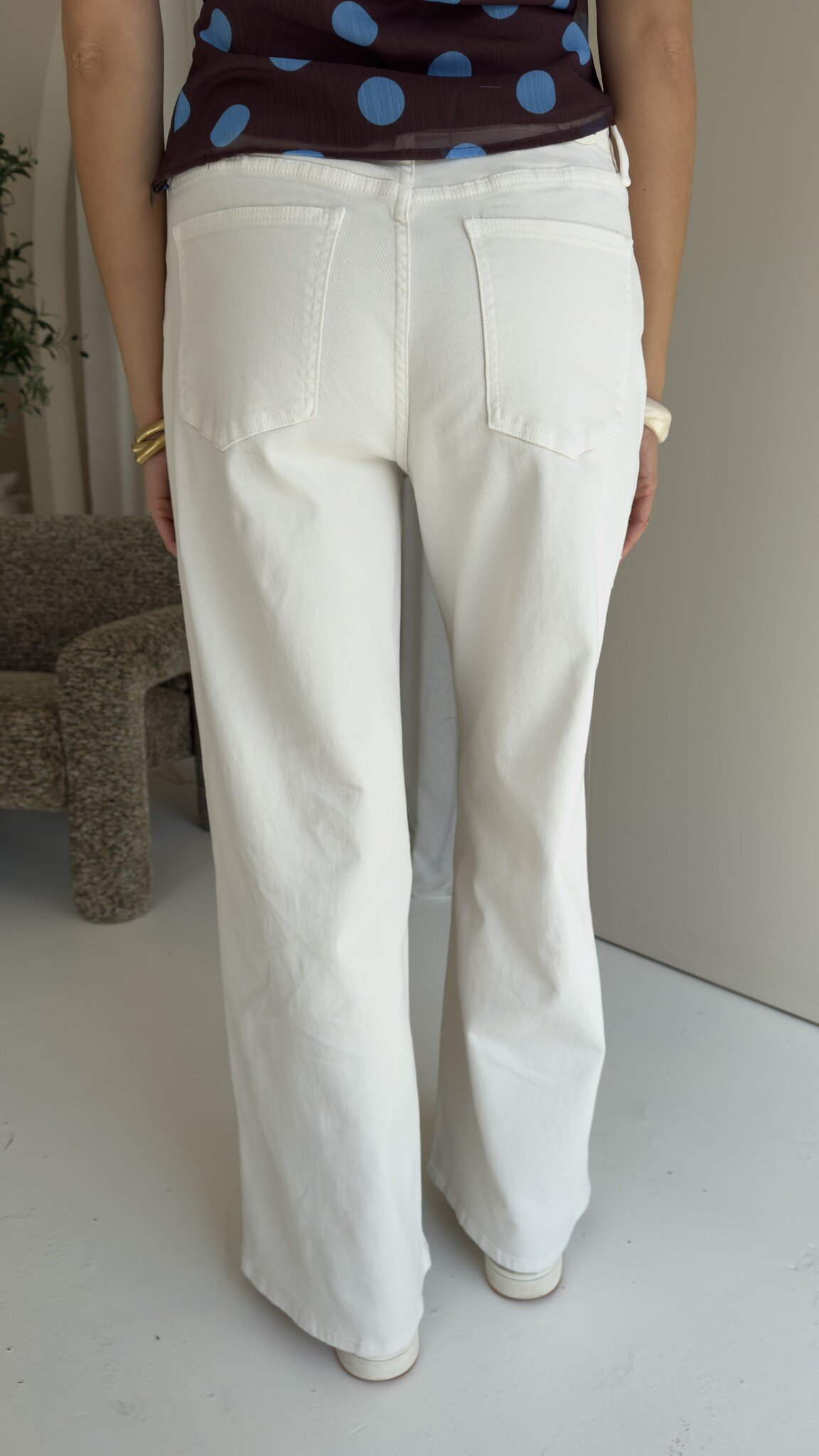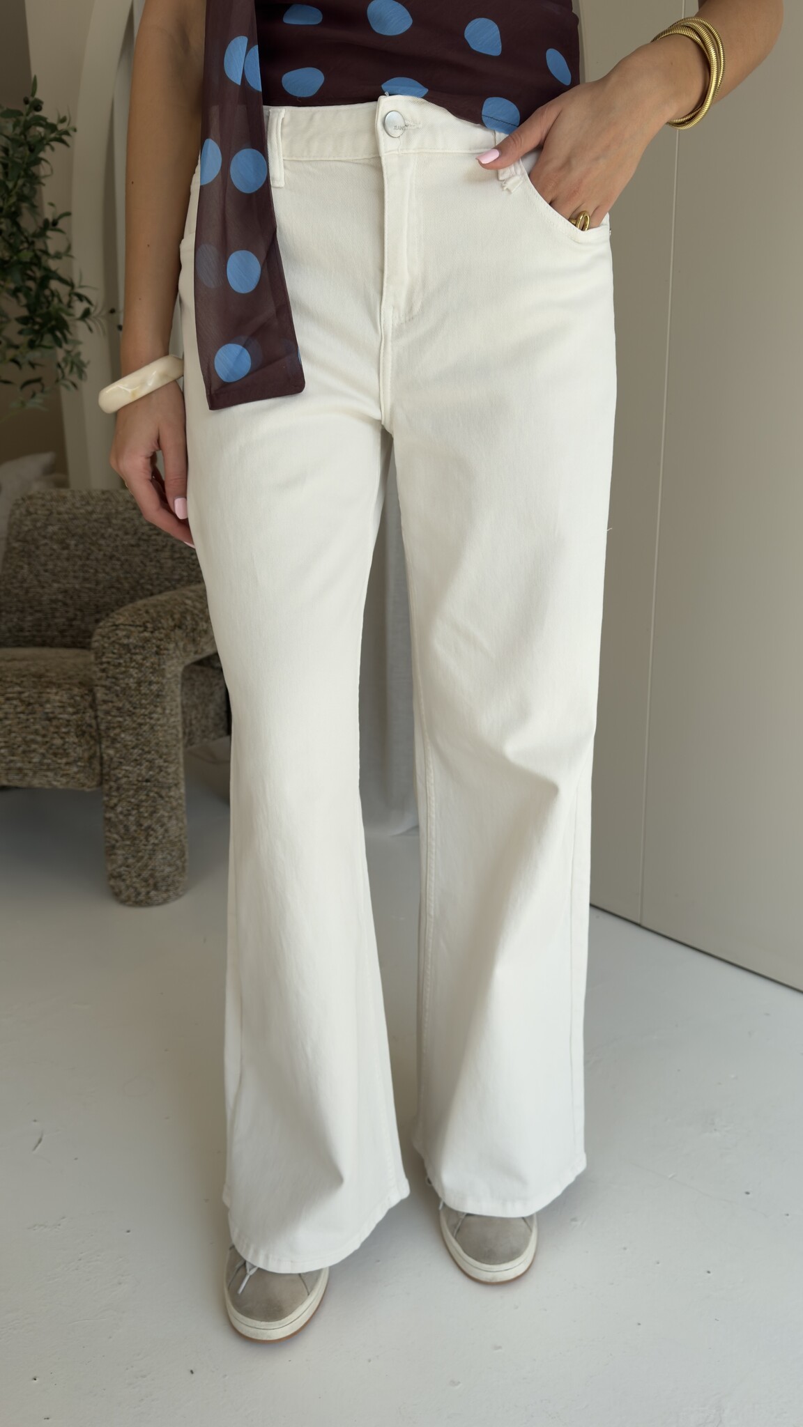 Deze jeans valt mid waist en heeft een wide leg fit. De jeans zit heerlijk comfortabel en bevat veel stretch.