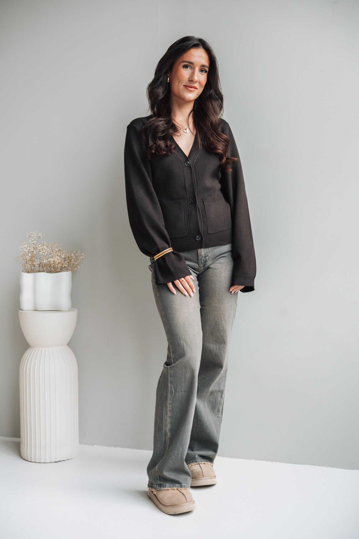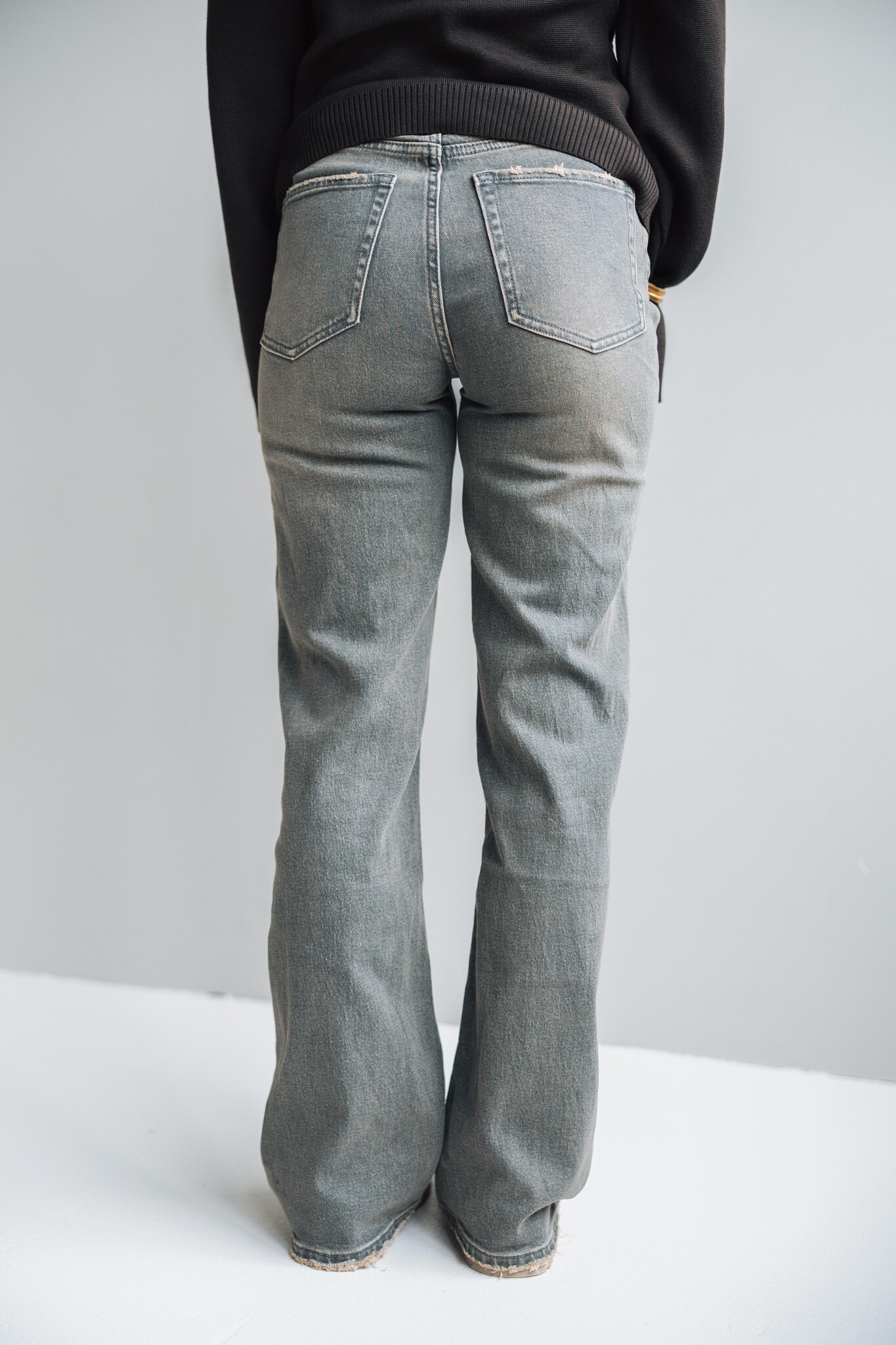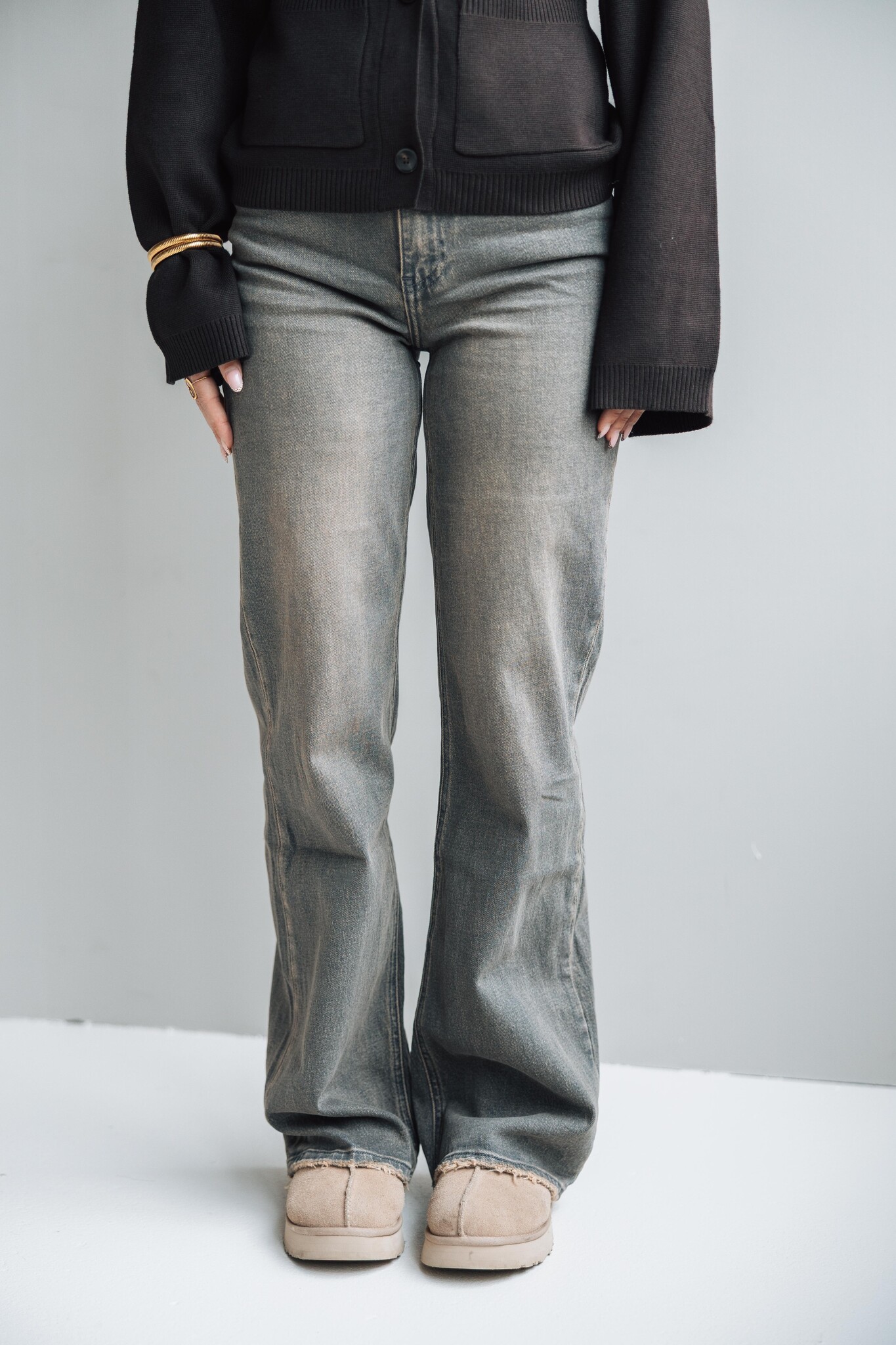 Deze straight leg jeans heeft lekker veel stretch, een grijze wassing en een hoge taille met riemlusjes. De perfecte jeans om jouw fall wardrobe mee aan te vullen!