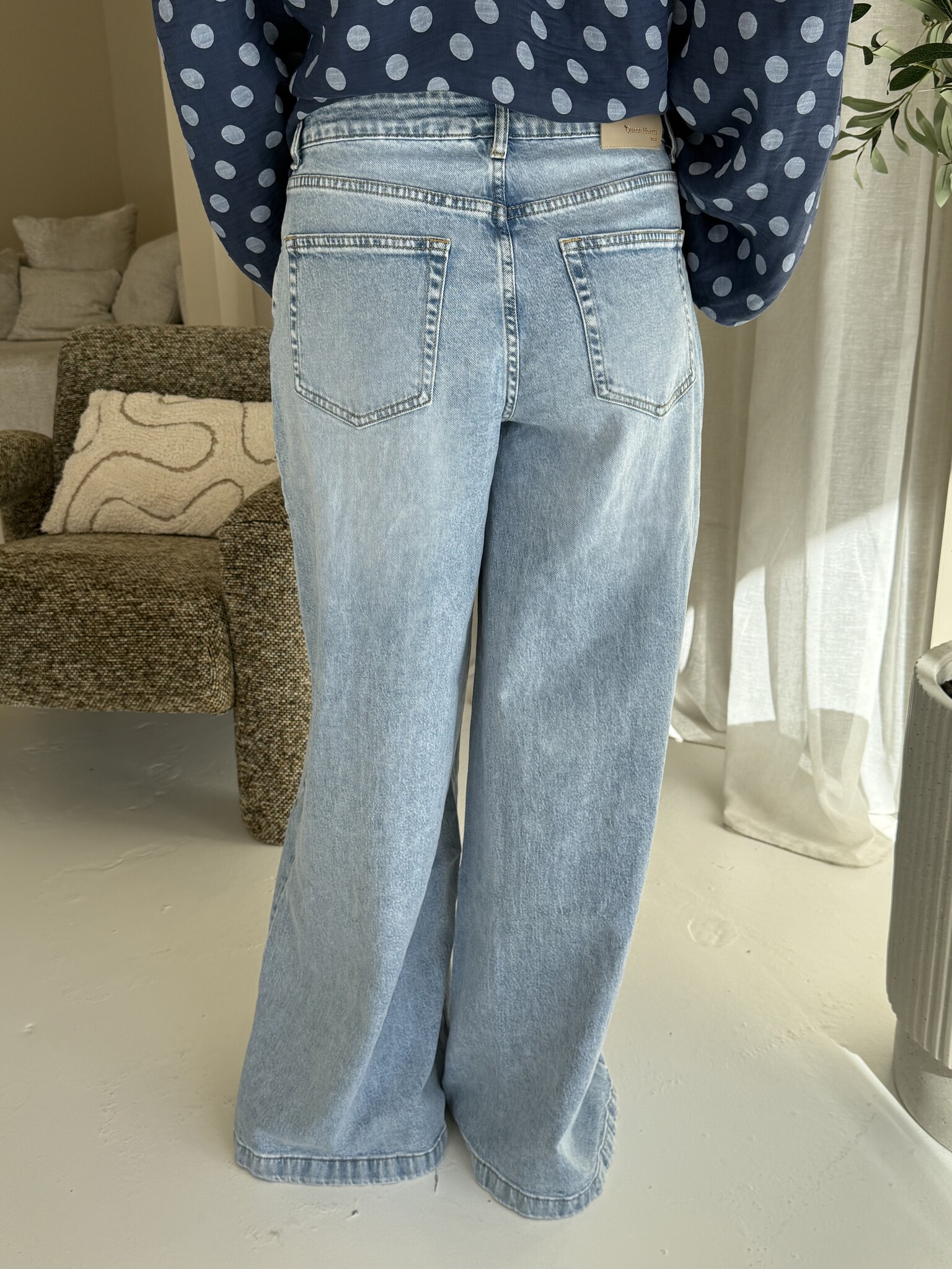 Deze wide leg jeans heeft een mooie blauwe wassing en leuke naad details aan de zijkant. De jeans is eindeloos te stylen, een echte must-have voor in je garderobe.