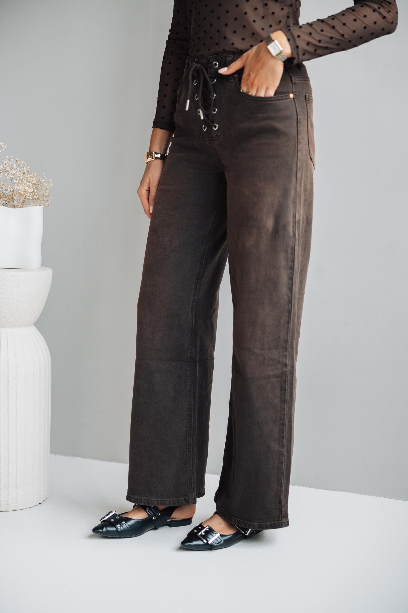 Jeans wide leg bruin | Amber