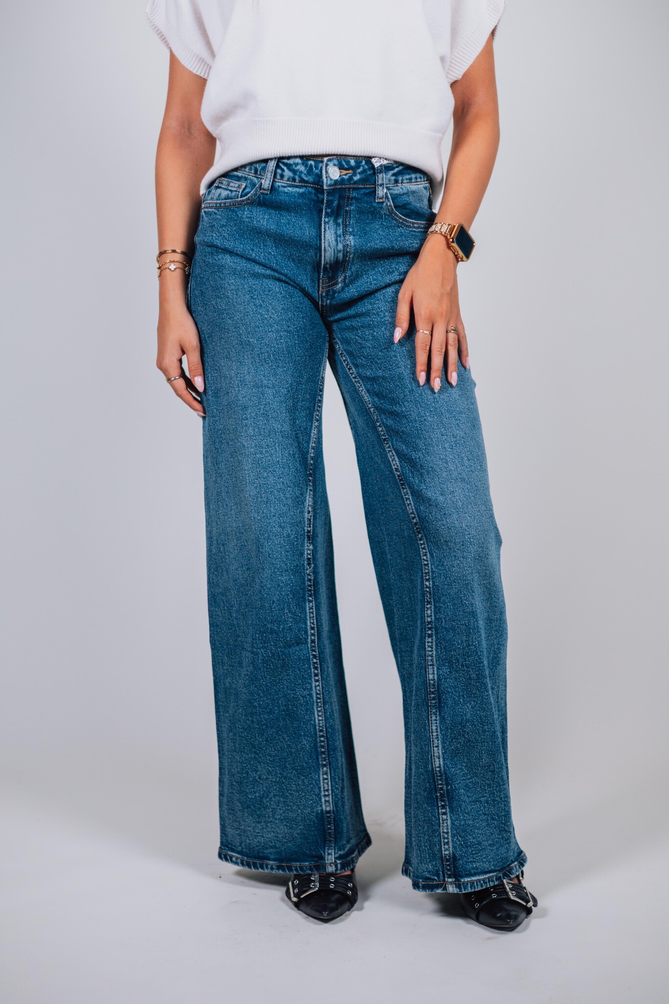 Jeans wide leg dark denim | Gwenn