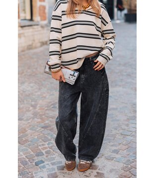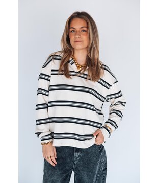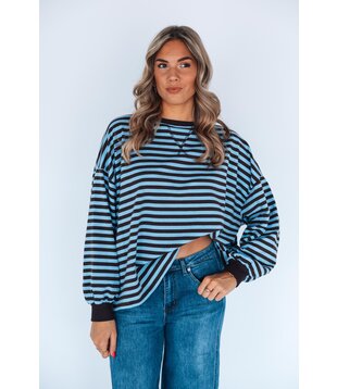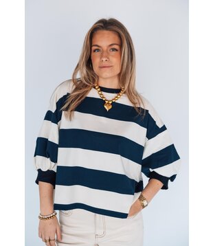 Deze gestreepte trui heeft een oversized fit met ronde hals en ballonmouwen met een aangesloten boord – comfy met een stijlvolle twist!