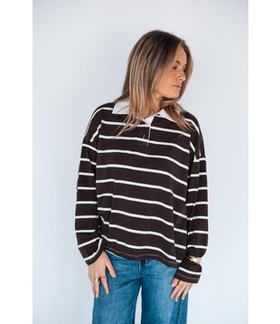 Deze top heeft een trendy polo model met een bruin-wit streeppatroon. Het kraagje geeft een nette touch, terwijl de strepen zorgen voor een frisse, trendy uitstraling!