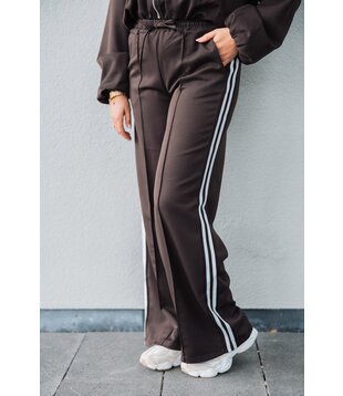 Deze pantalon heeft een relaxte fit, elastieke band en een streep detail aan de zijkant. Comfortabel én stijlvol!