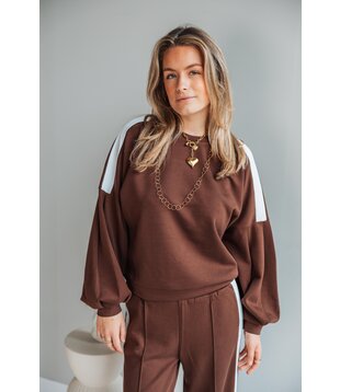 Deze sweater van Fluresk is relaxed en funky tegelijk. Met colourblock details, pofmouwen en sportieve strepen draag je ‘m solo of als set met de bijpassende broek.