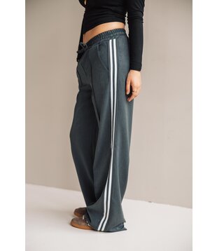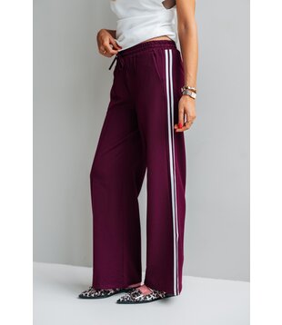Deze pantalon heeft een relaxte fit, elastieke band en een streep detail aan de zijkant. Comfortabel én stijlvol!