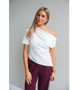 Deze top heeft een chique uitstraling en een off-shoulder pasvorm. Perfect om te combineren met een pantalon of casual met een jeans!