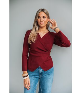 Deze getailleerde top met lange mouwen is een echte musthave. De V-hals en het gouden detail aan de zijkant geven elke look een elegante touch.