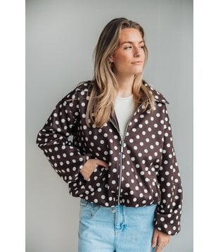 Dit jasje heeft een polkadot print, een ballon fit en een rits in het midden. Een item dat je herfstgarderobe meteen een trendy upgrade geeft!