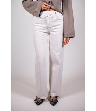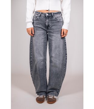 Deze jeans heeft een mooie grijze wassing, een mid-waist taille met riemlusjes en een balloon fit met stretch. We love this jeans trend!