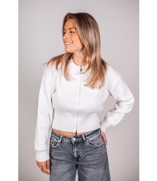 Dit vest heeft lange mouwen, is gemaakt van een iets dikker stofje en heeft een rits in het midden. Het perfecte item voor de herfst!