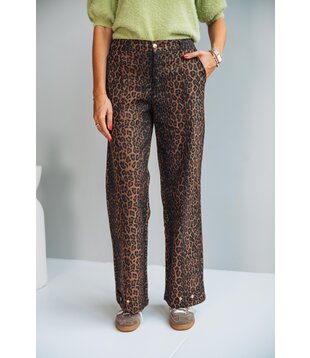 Deze wide leg jeans komt in een leopard print, is een extra lang model en heeft lekker veel stretch. Perfect voor de langere dames!