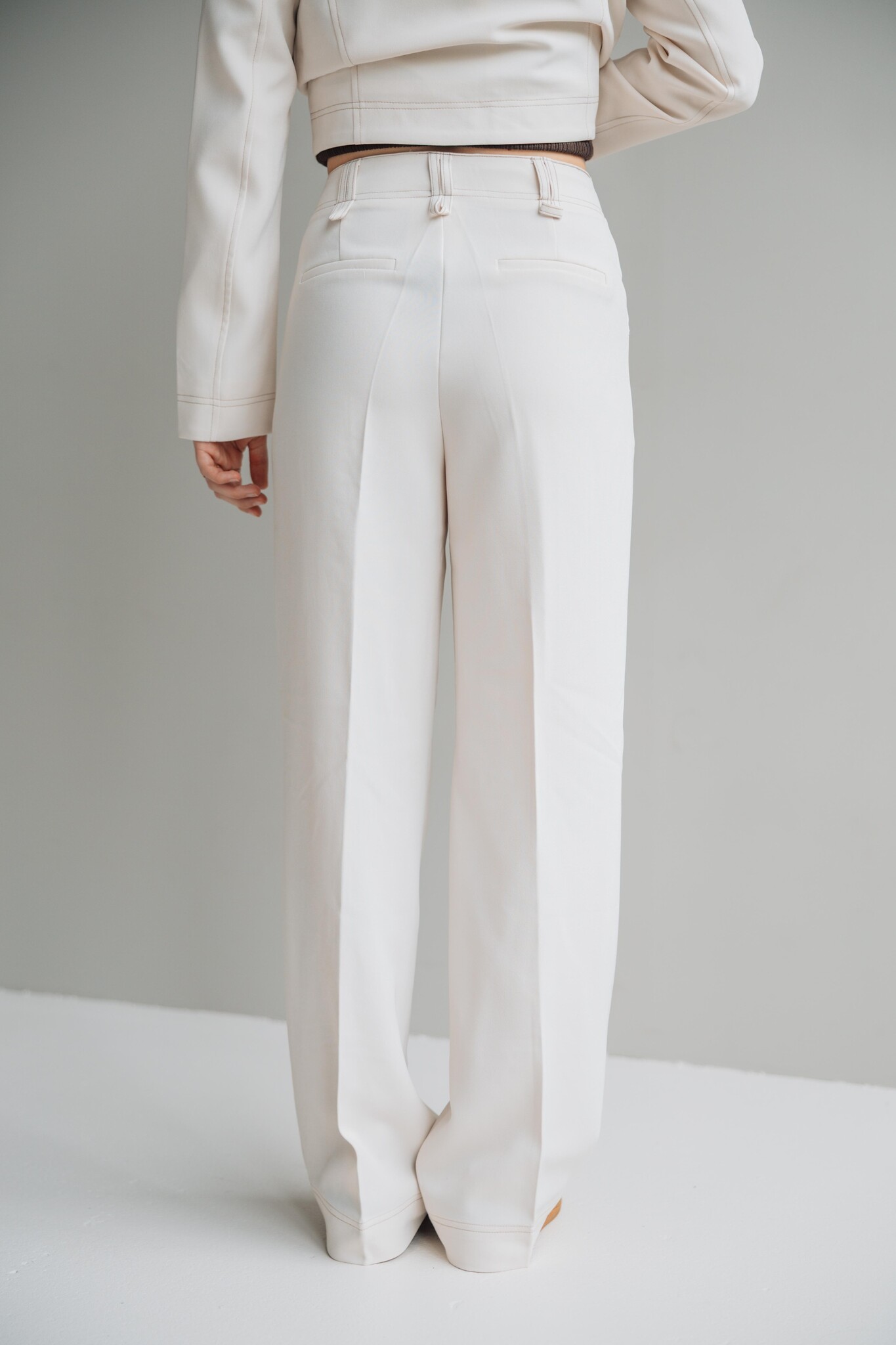 Deze pantalon heeft een straight leg fit, een hoge taille en riemlusjes. Combineer de broek met het bijpassende jasje voor de complete look!