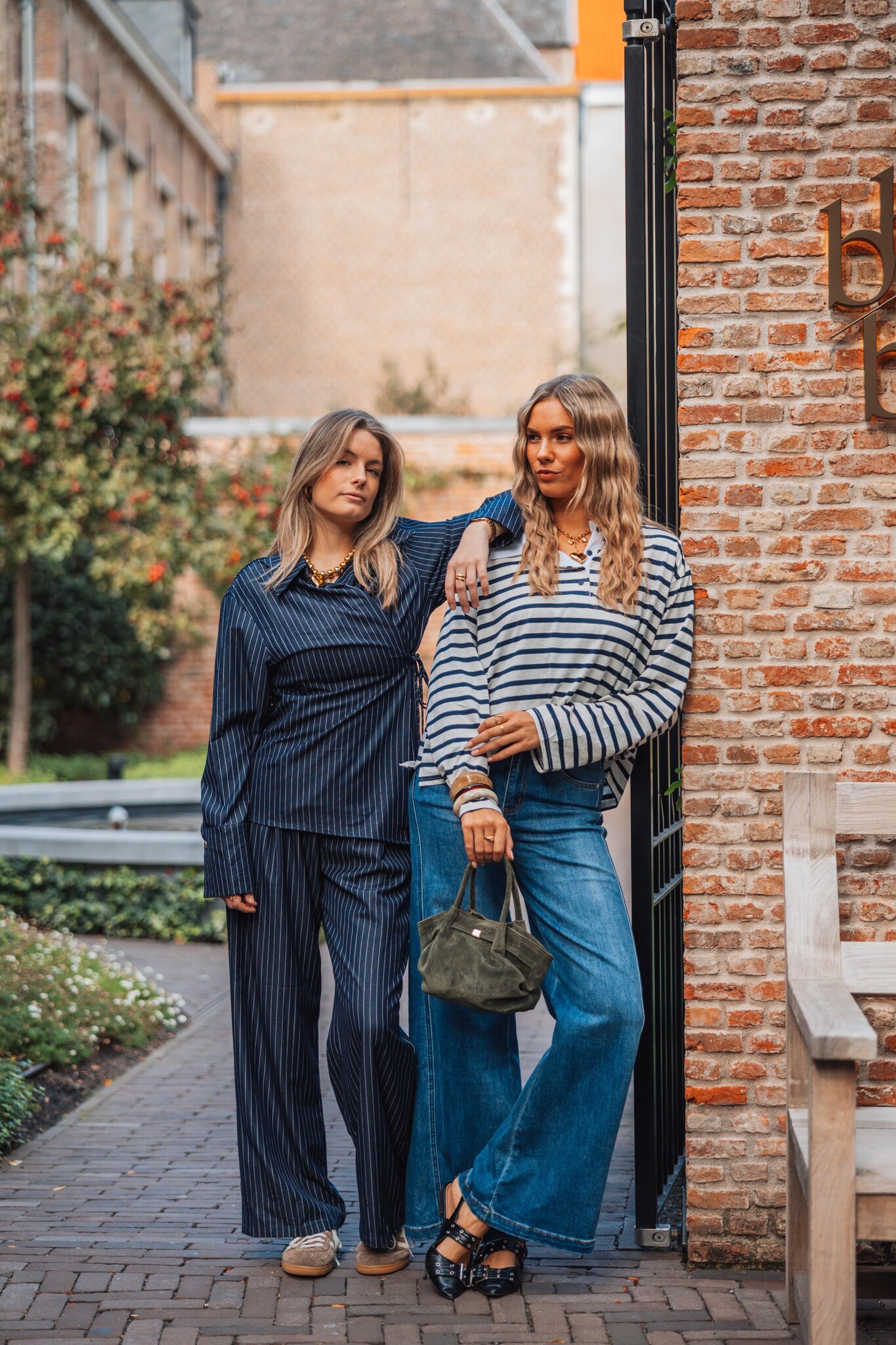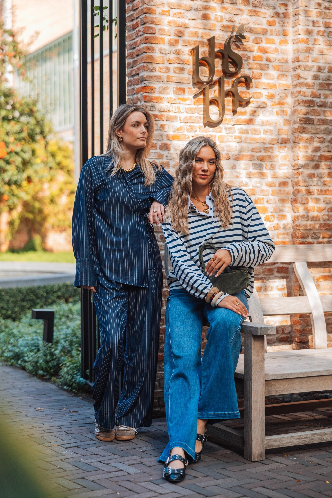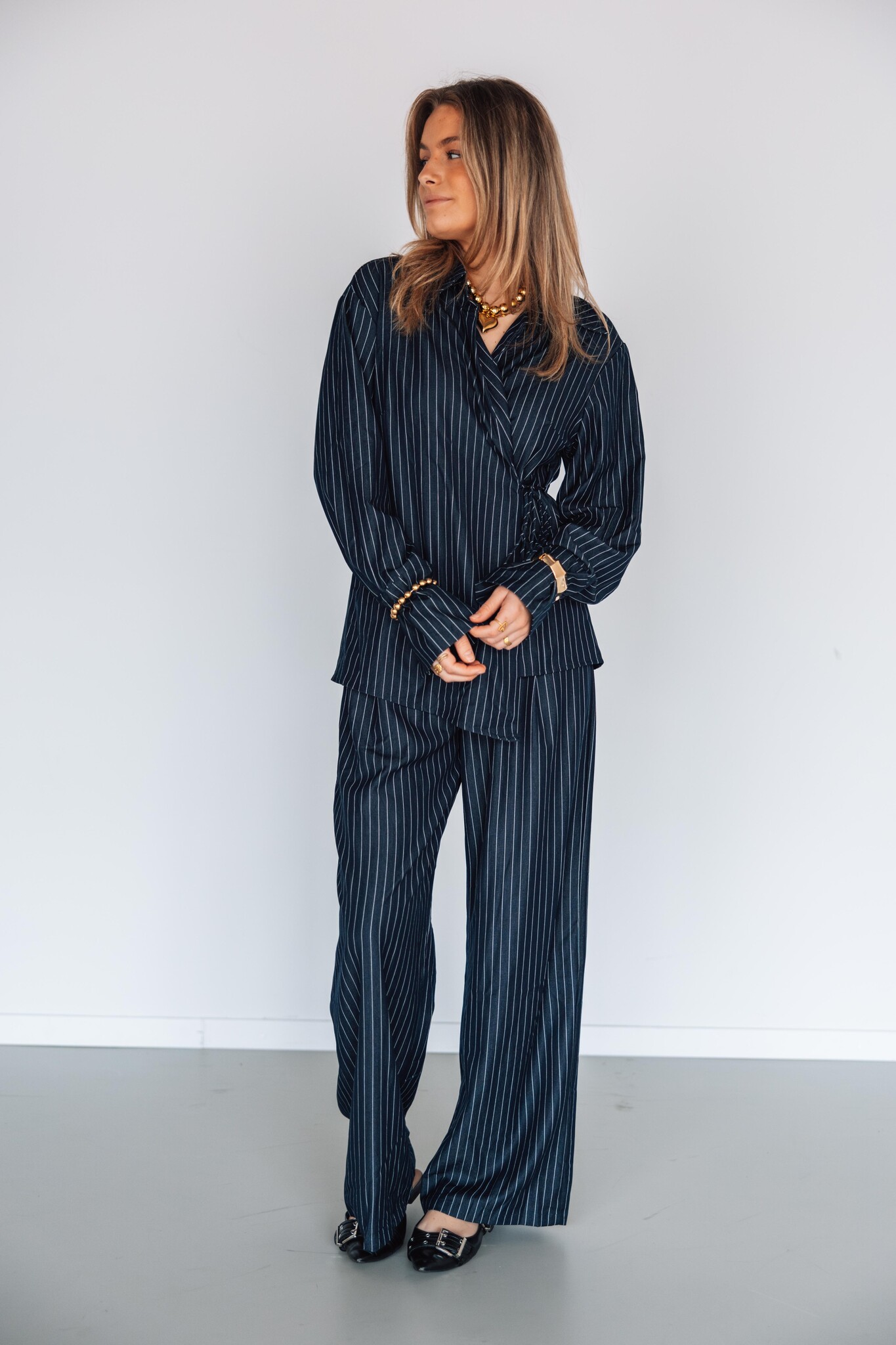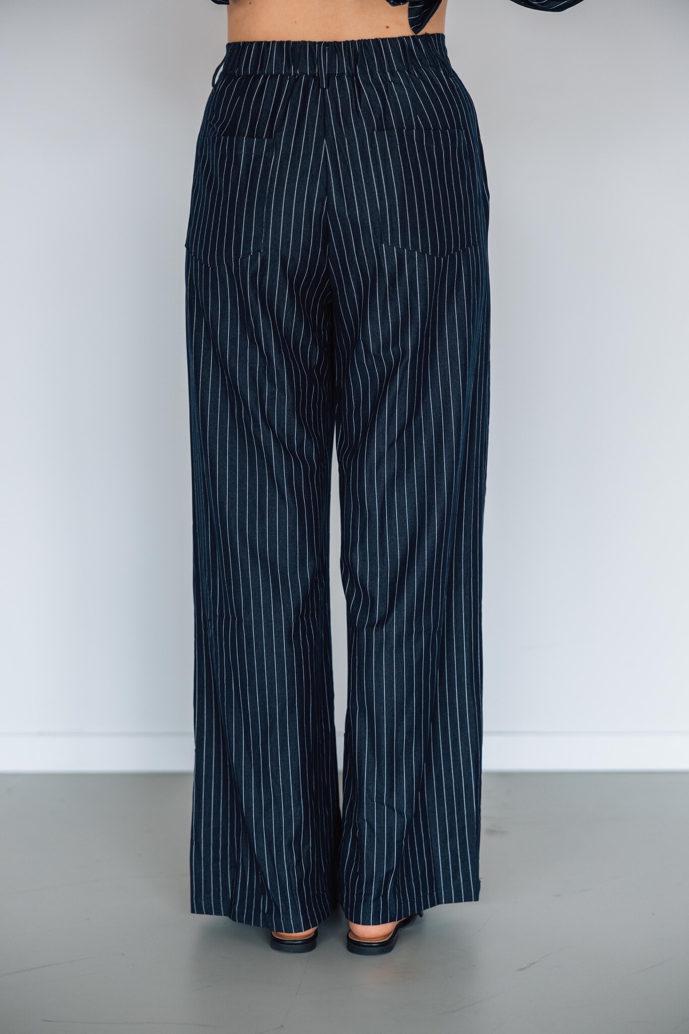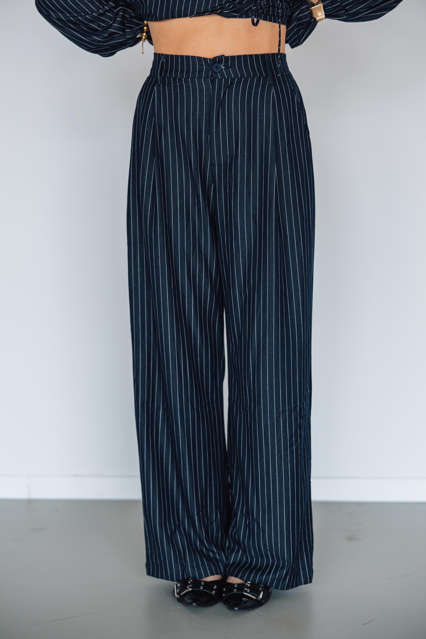Deze gestreepte pantalon heeft een rechte pasvorm, een hoge taille met een knoop- en ritssluiting, riemlusjes en steekzakken. Combineer het met de bijpassende blouse voor een complete co-ord look!