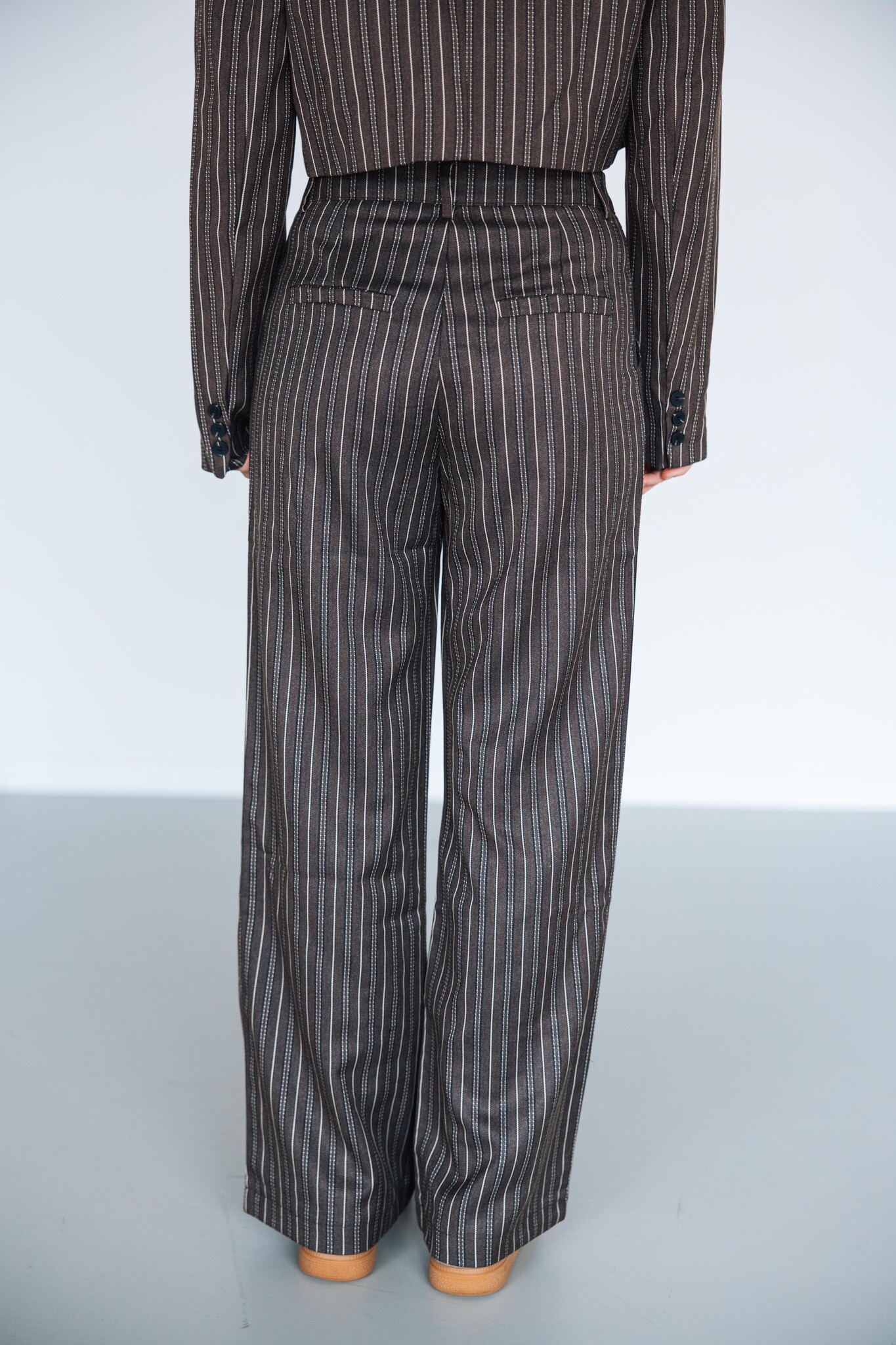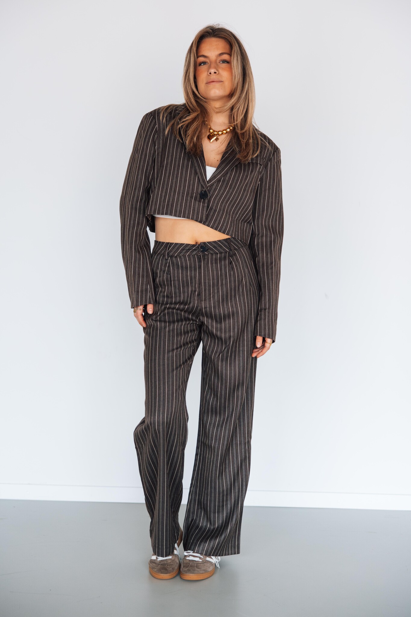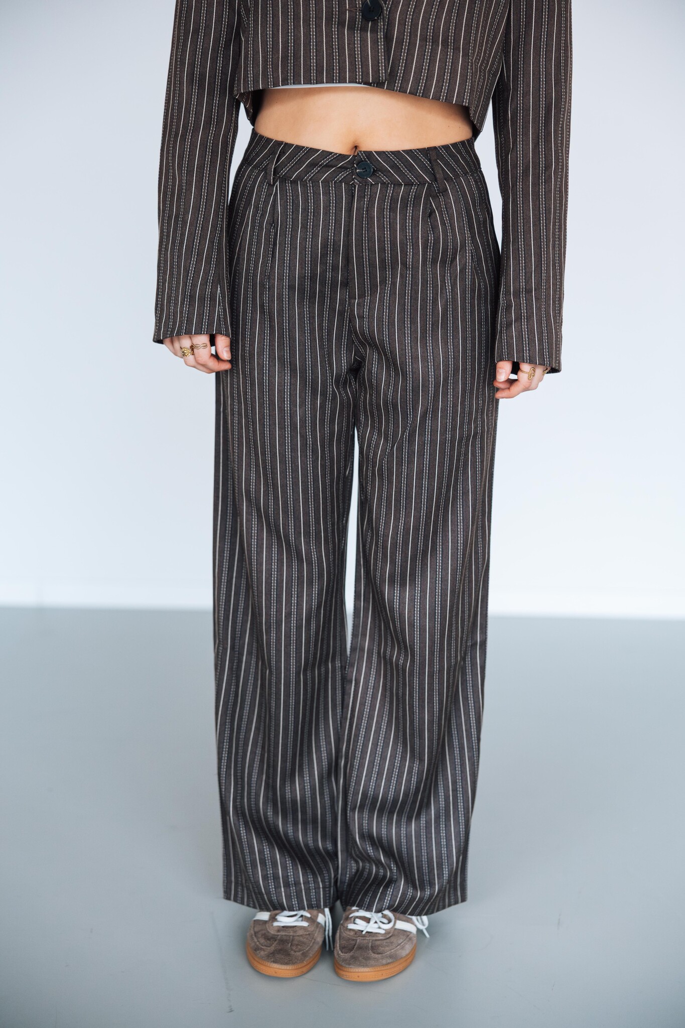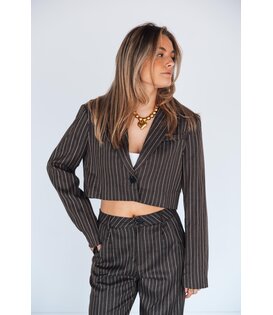 Deze gestreepte pantalon heeft een hoge taille, riemlusjes en steekzakken – perfect voor elke look, van casual tot chic! Combineer het met de bijpassende blazer voor een complete co-ord look.
