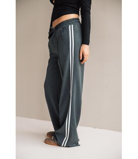 Deze pantalon heeft een relaxte fit, elastieke band en een streep detail aan de zijkant. Comfortabel én stijlvol!