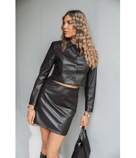 Dit rokje komt in een mooie bruine tint en heeft een trendy slangenpatroon. Combineer met het bijpassende jasje voor de complete look!