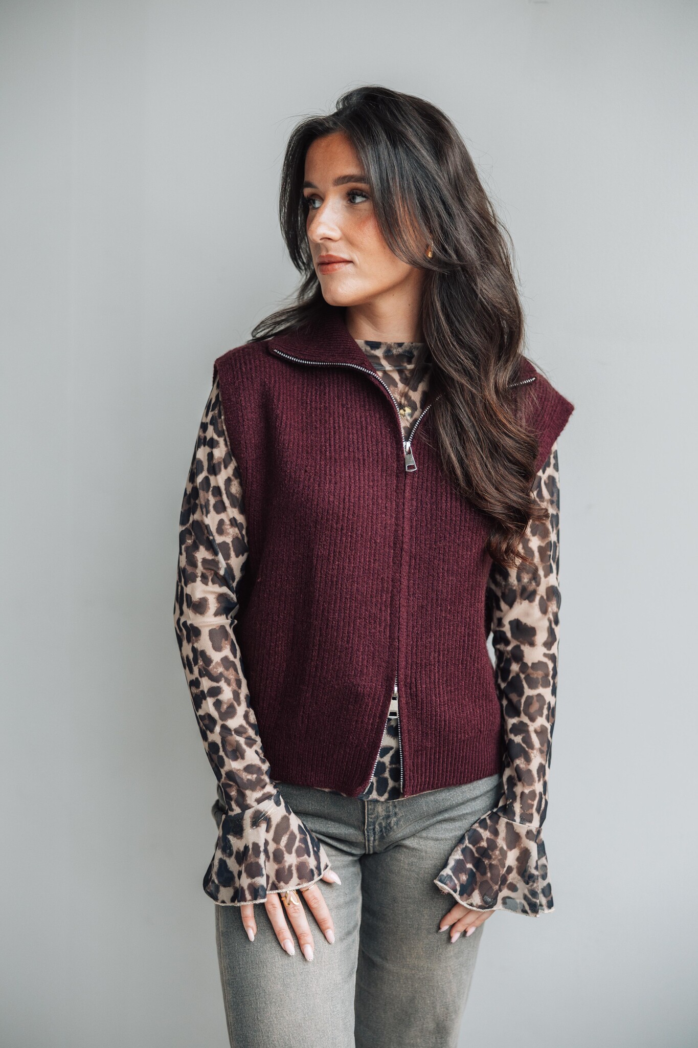 Deze spencer is gemaakt van een fijne, zachte stof en heeft een rits in het midden. Leuk om solo als top te dragen of te combineren met een panter mesh top.