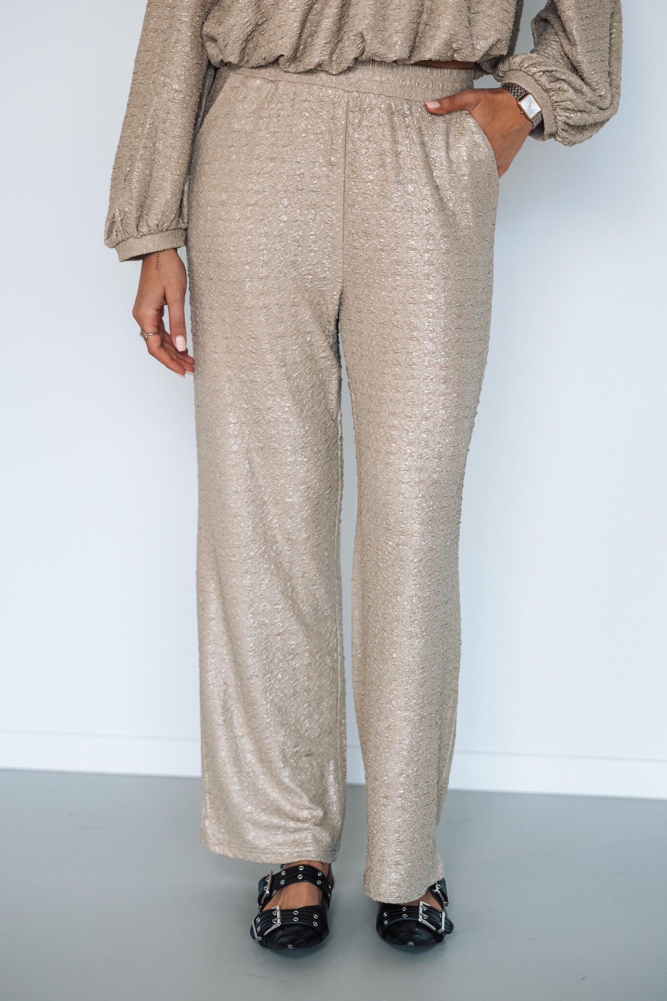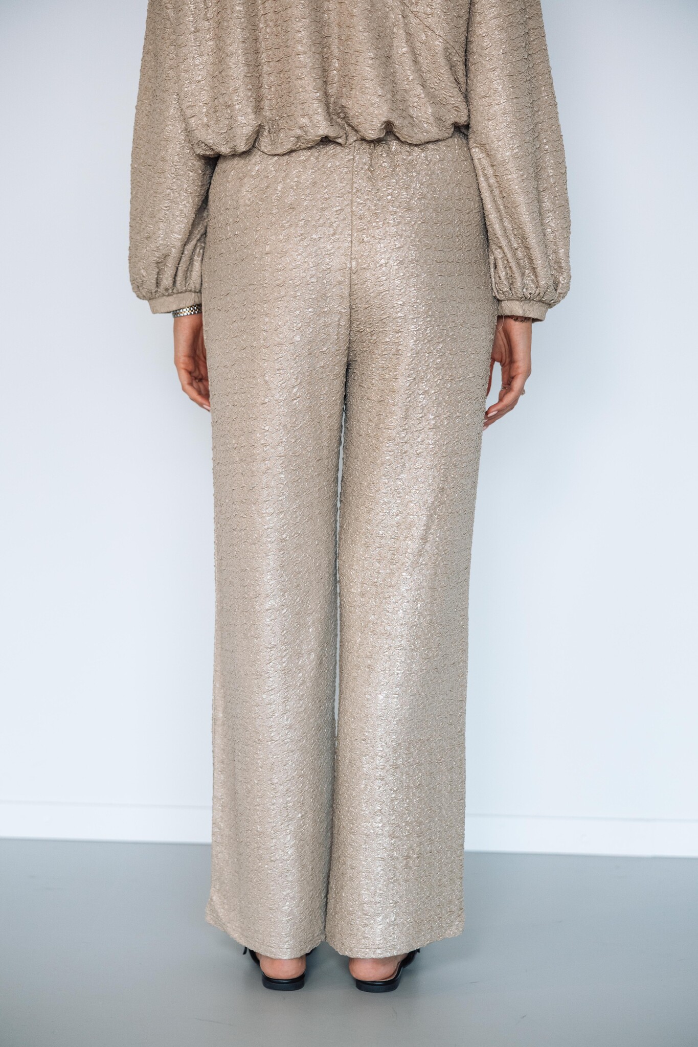 Deze broek van Studio Amaya heeft een elastische taille, rechte tot wijd uitlopende pijpen en twee zakken. De zachte stof voelt comfortabel en soepel aan.