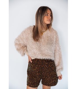 Dit broekje van Studio Amaya heeft een high waist model. Door het ruit patroon in combinatie met pailletten, is dit dé feestelijke must-have!