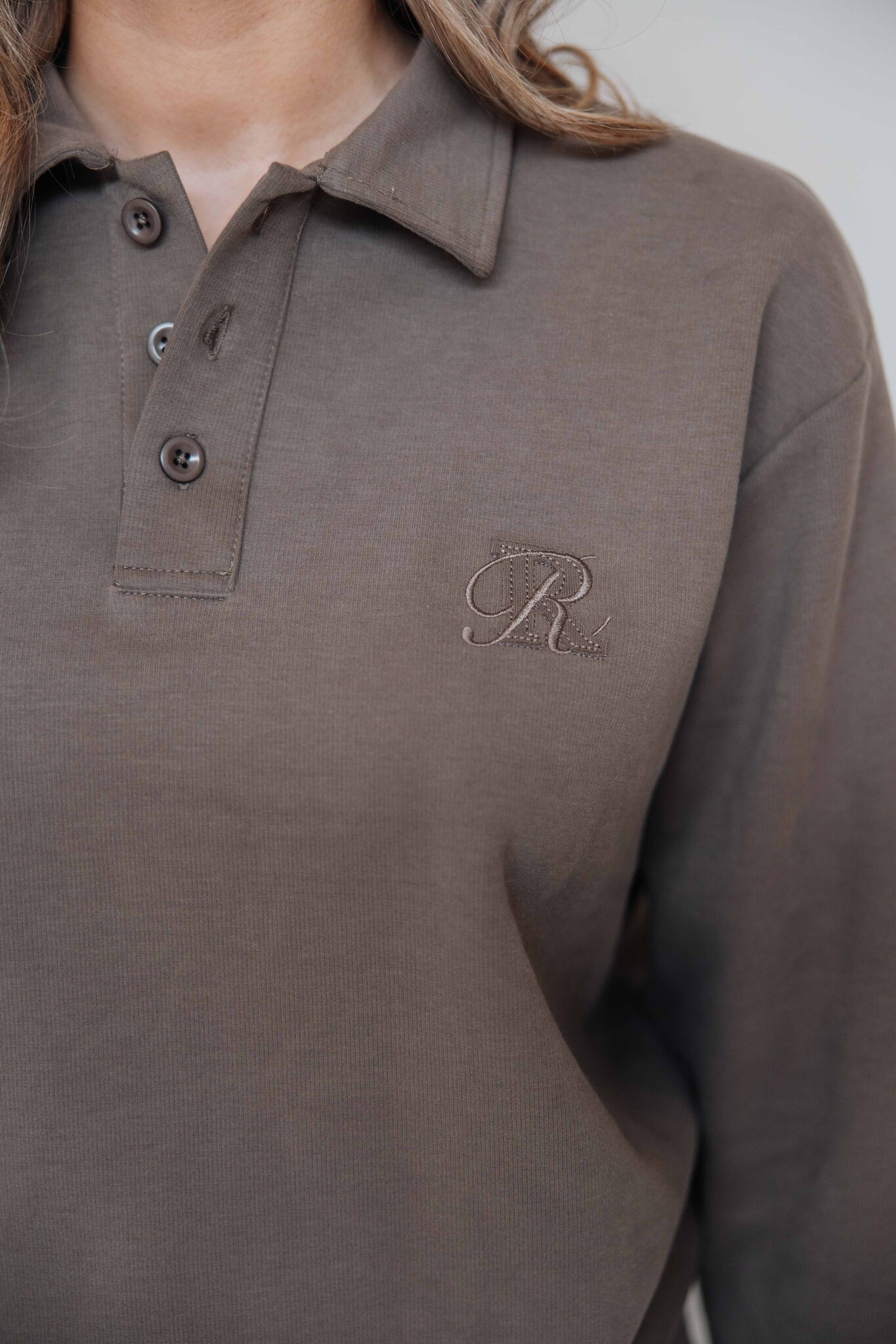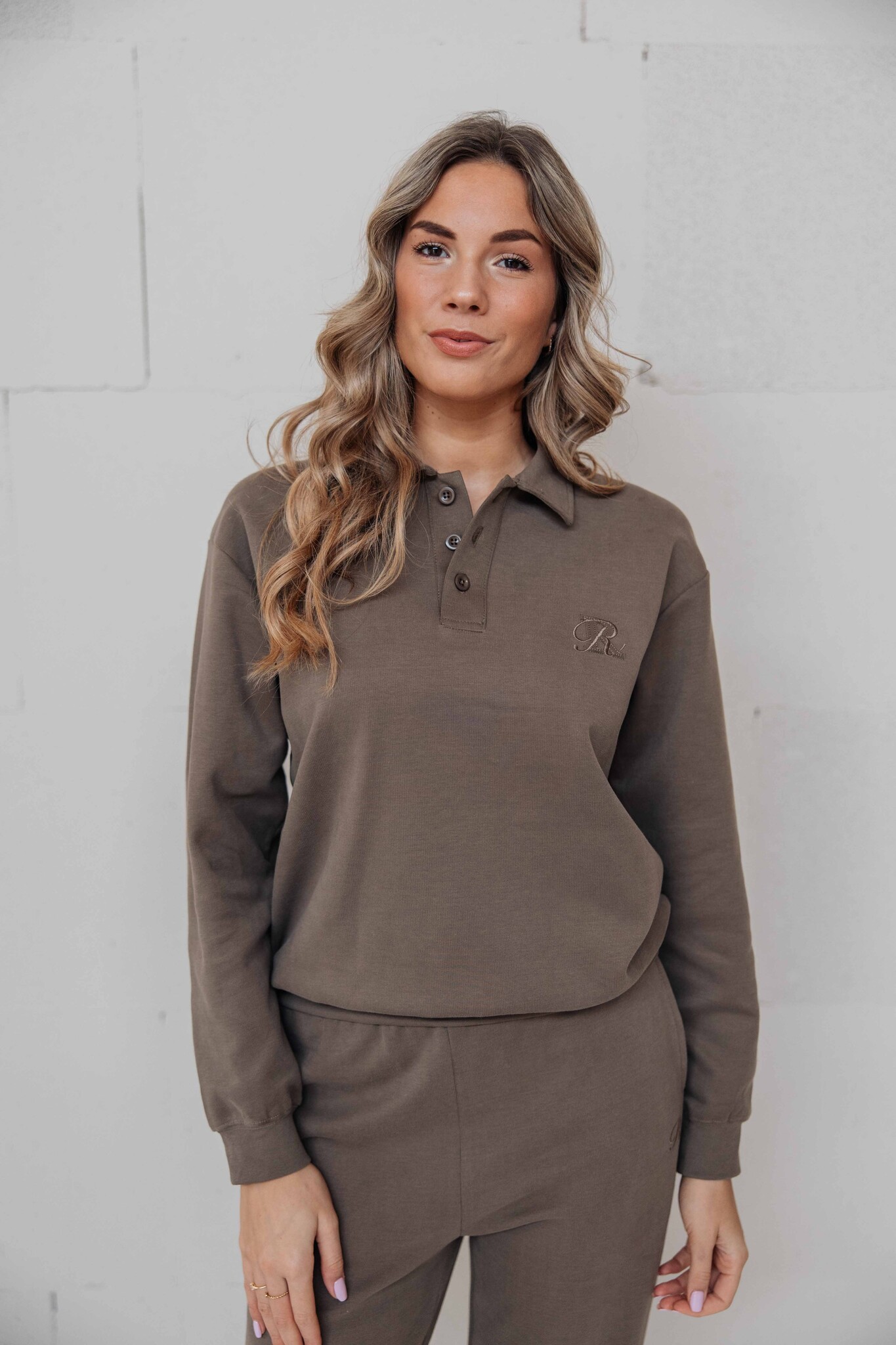 Deze polo heeft een kraagje met knoopjes en komt in een mooie trendy bruine kleur. Afgewerkt met een klein geborduurd detail op de voorkant en leuk om te combineren met de bijpassende broek!