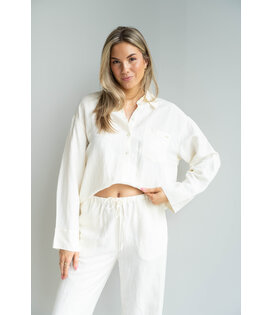 Deze linnen blouse heeft een oversized pasvorm, een knoopsluiting en borstzak, perfect voor een heerlijke zomerdag en op vakantie! Combineer het met de Dana broek voor een complete co-ord look!