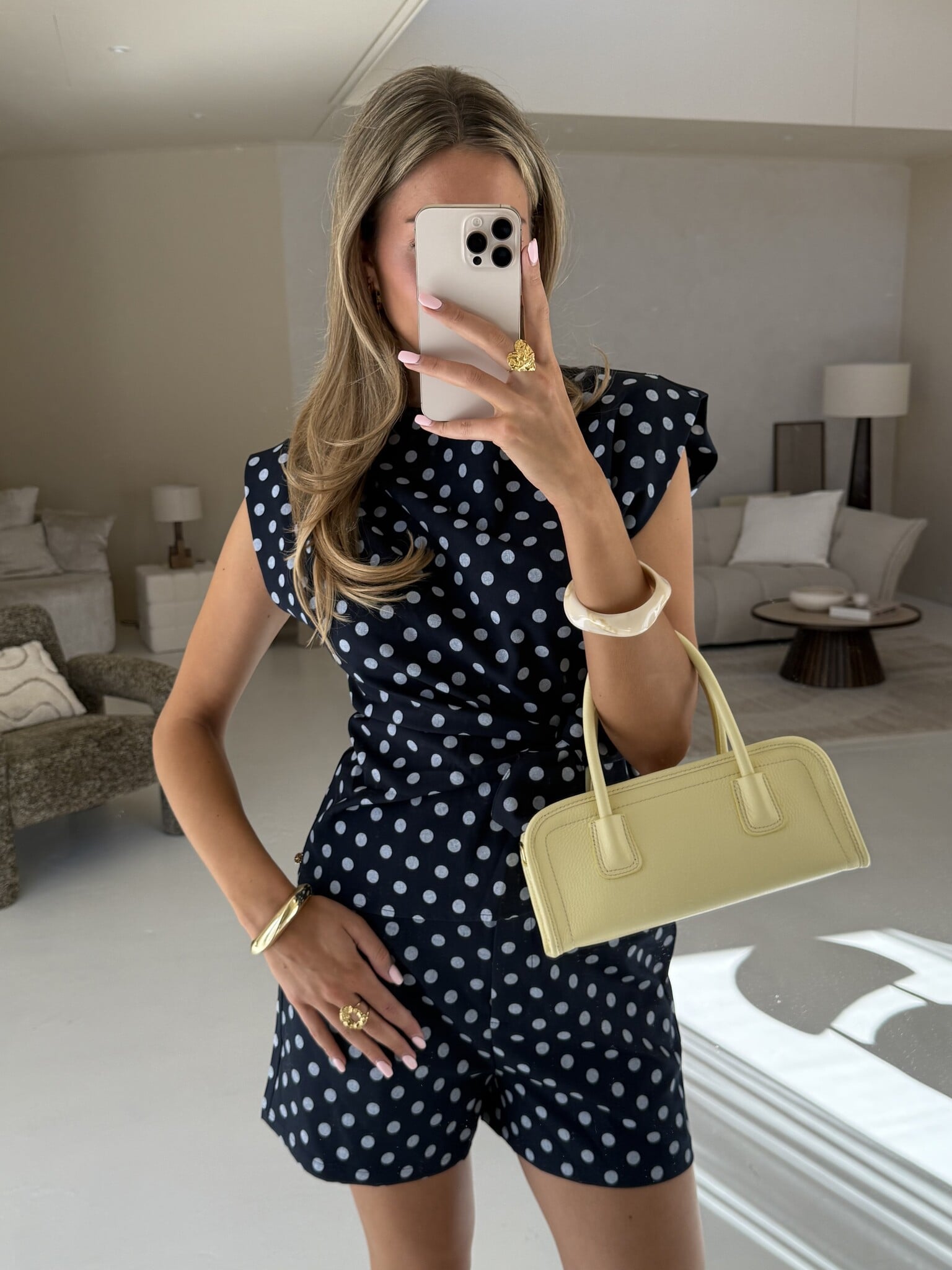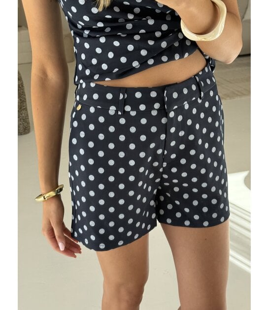 Deze short heeft hoge hals, een leuke strikdetail aan de zijkant en een trendy polkadot print. Combineer het met de bijpassende short voor een complete co-ord look!