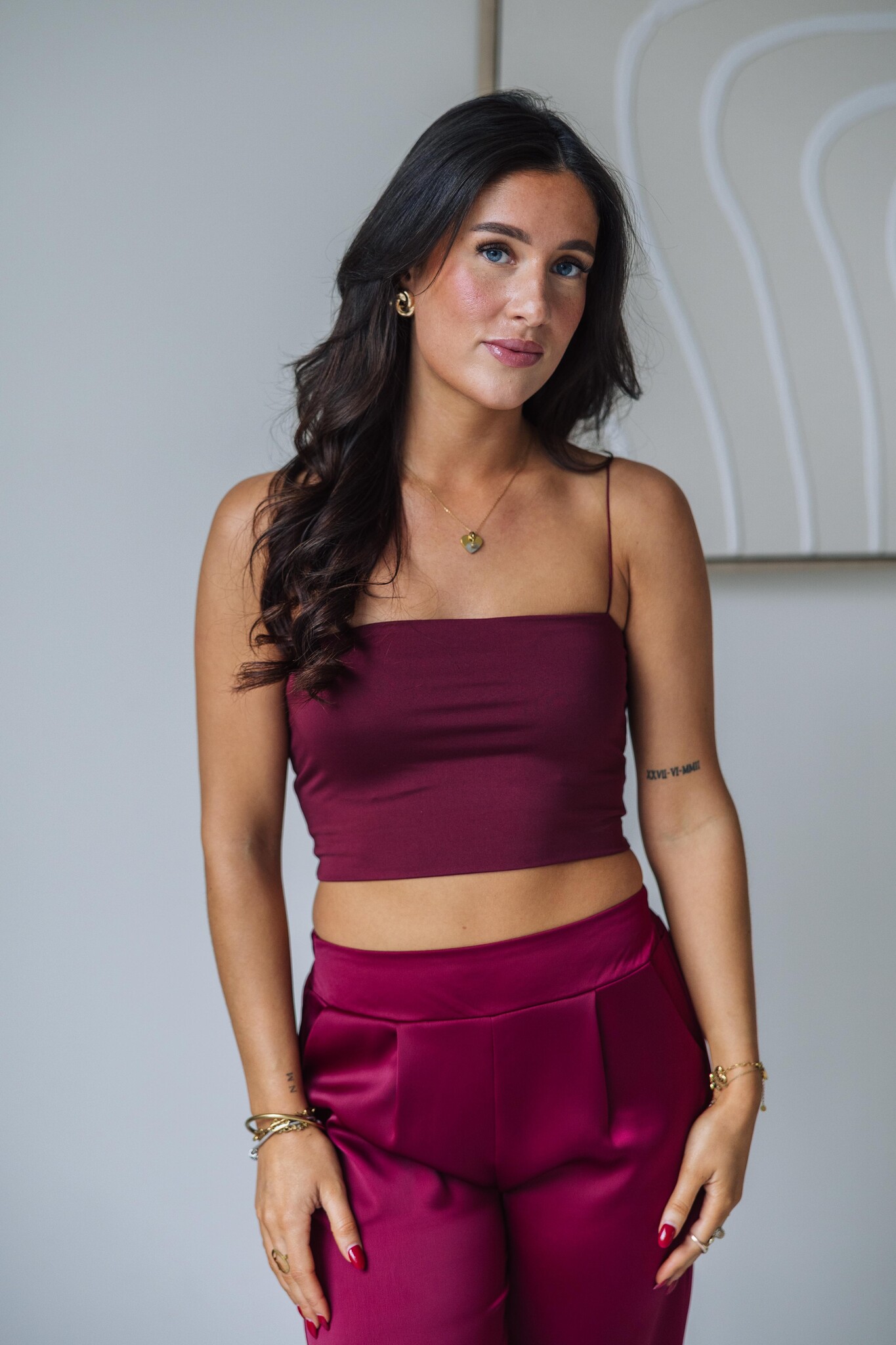 De perfecte basic top voor onder een lace of mesh top! Deze top heeft spaghettibandjes, valt kort en bevat stretch.