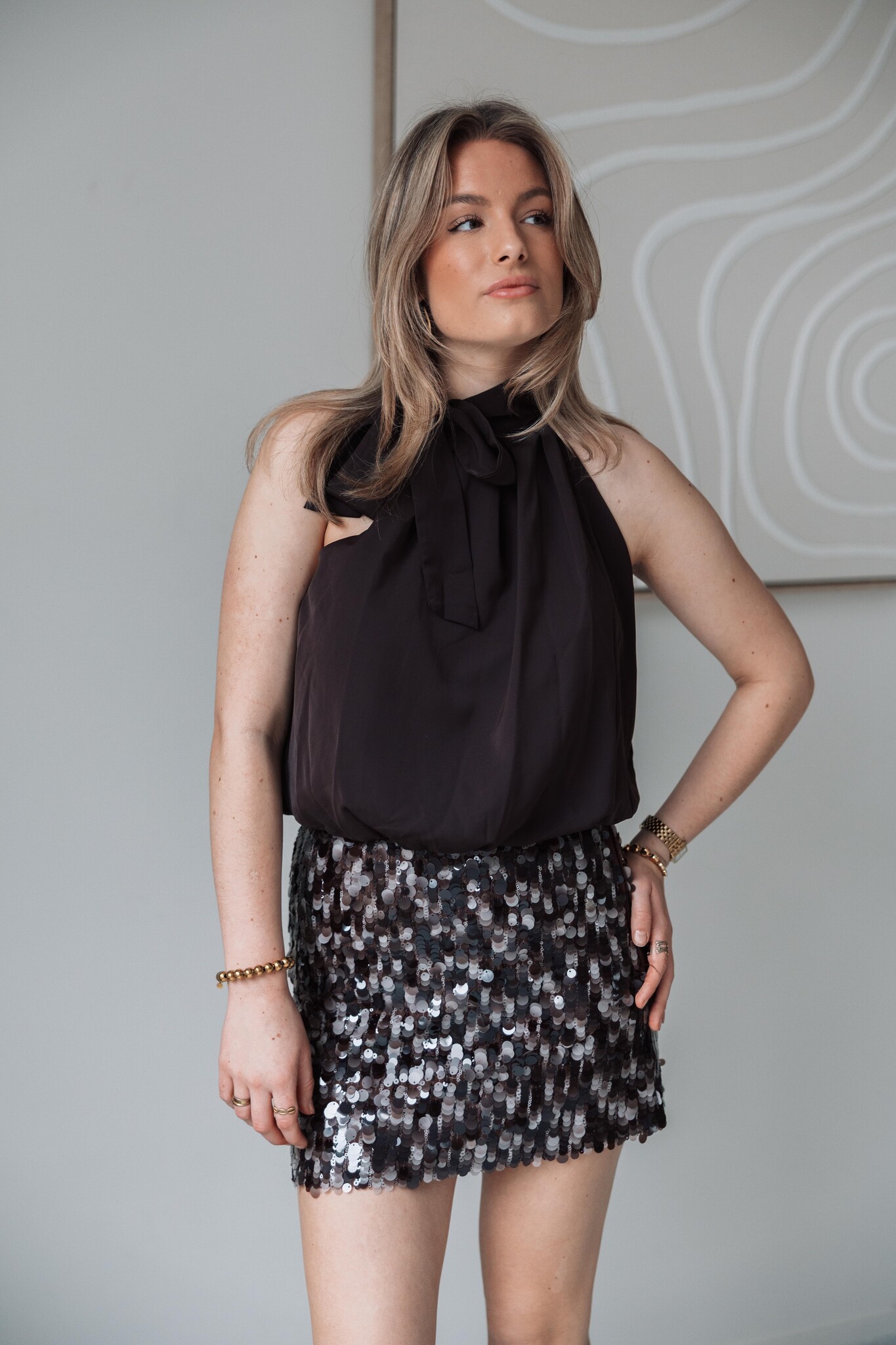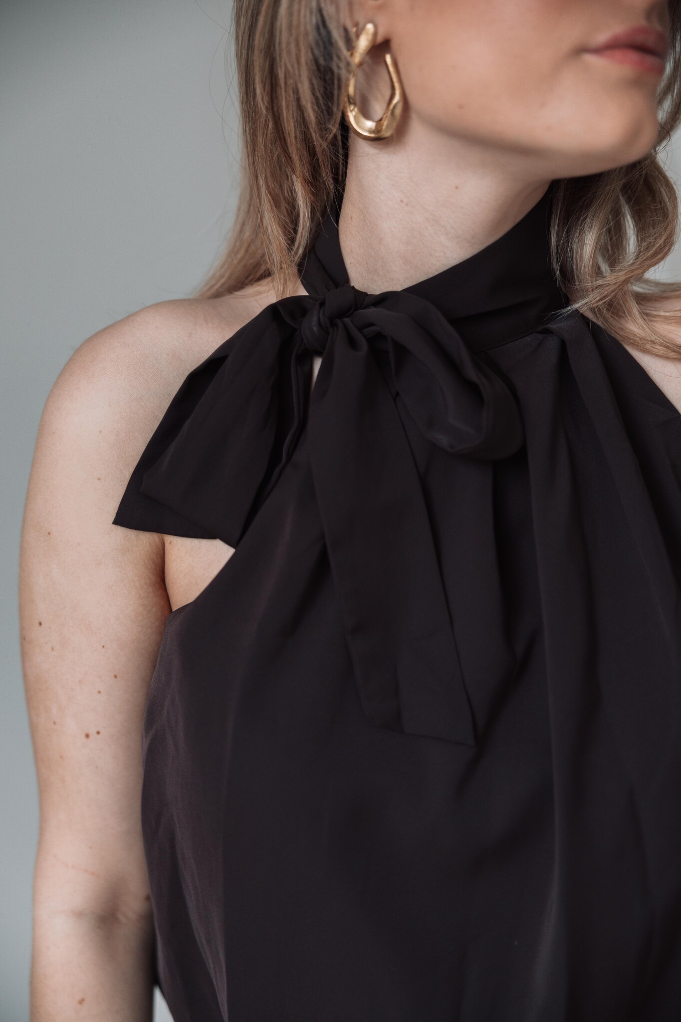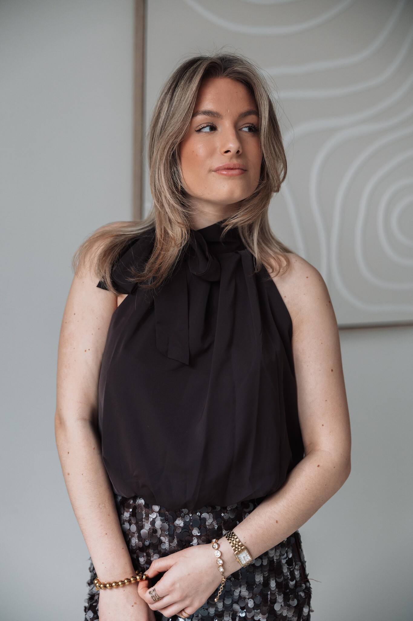 Deze mouwloze top heeft een elegant ballonmodel en is afgewerkt met een vrouwelijke strik bij de hals. De chique uitstraling maakt dit item perfect voor jouw volgende party look!