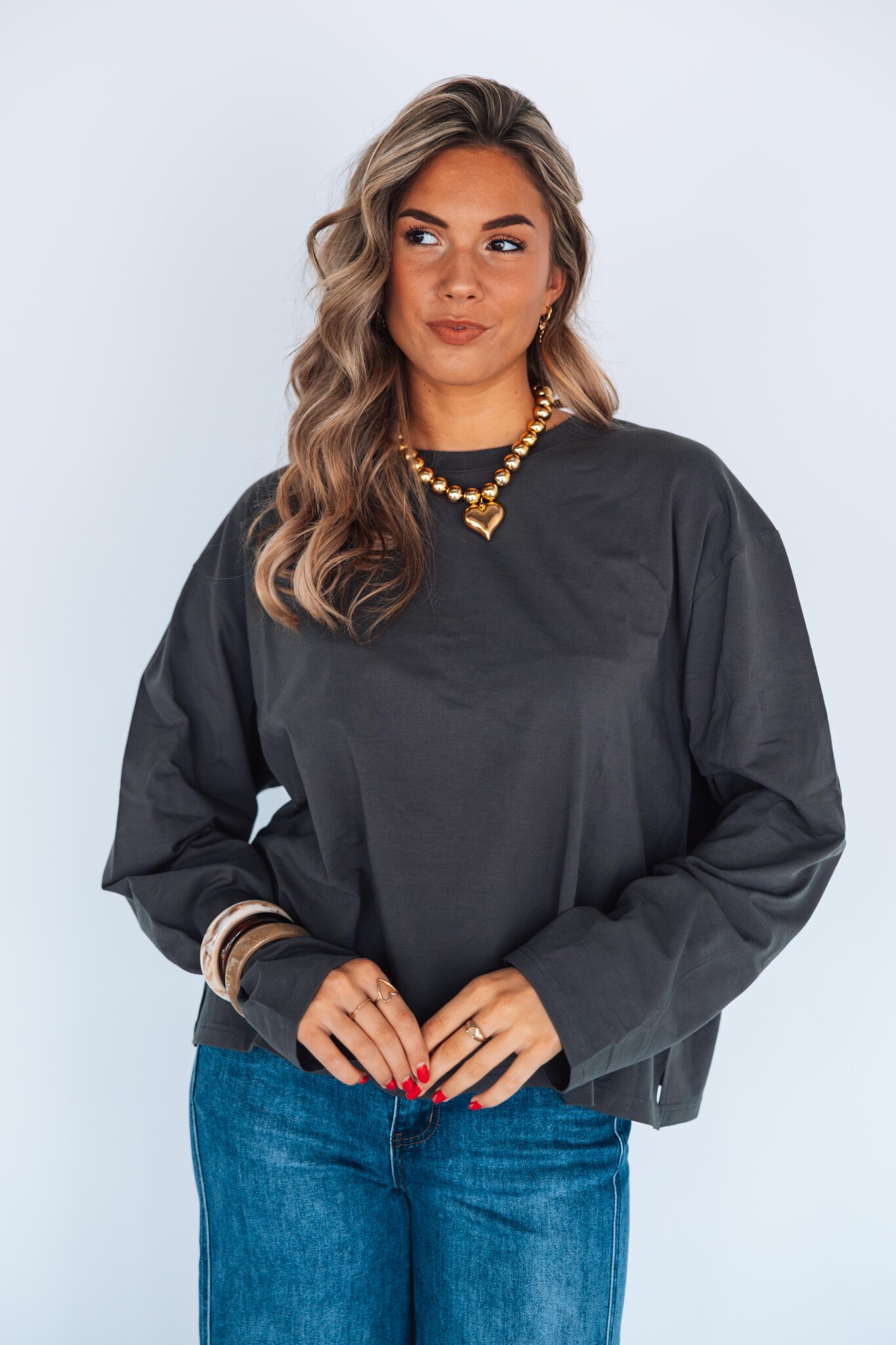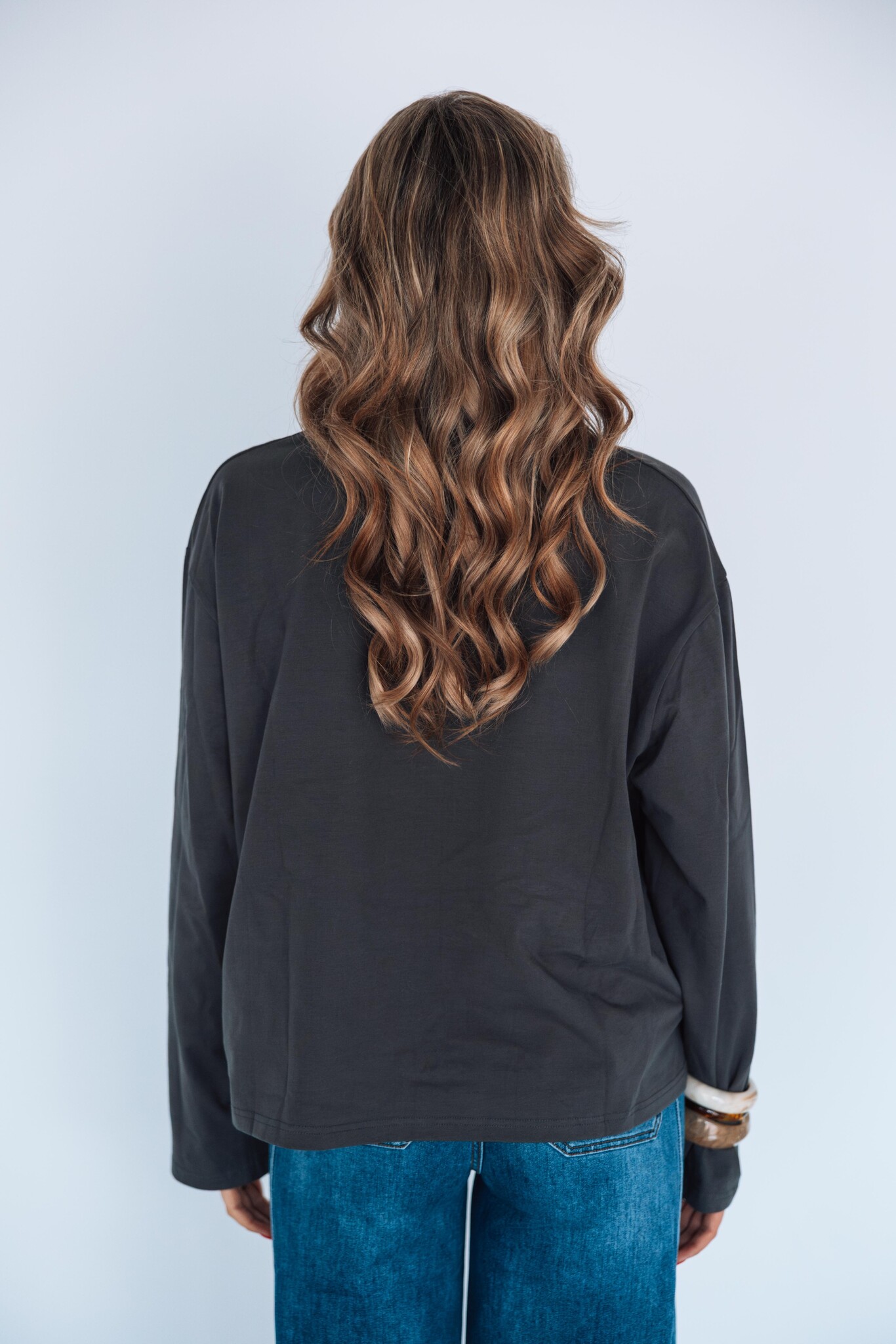 Deze longsleeve top heeft een losse fit en subtiele splitjes aan de zijkanten – comfortabel en makkelijk te stylen.
